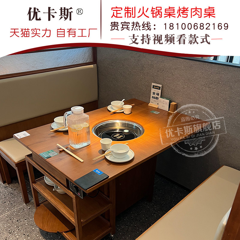 Столт с твердым древесином горячим горшкам Коммерческий бездымный очистка Мраморная индукционная плита Интегрированная изысканная пекарня шампуры ароматных столов и стульев
