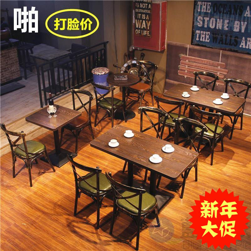 Быть старым ресторанным столом в ресторане, стул, комбинация железной промышленности в стиле молочной чай магазин кофейня из говядины говяжий рурд ретро