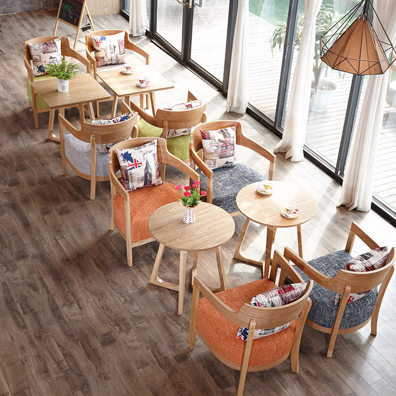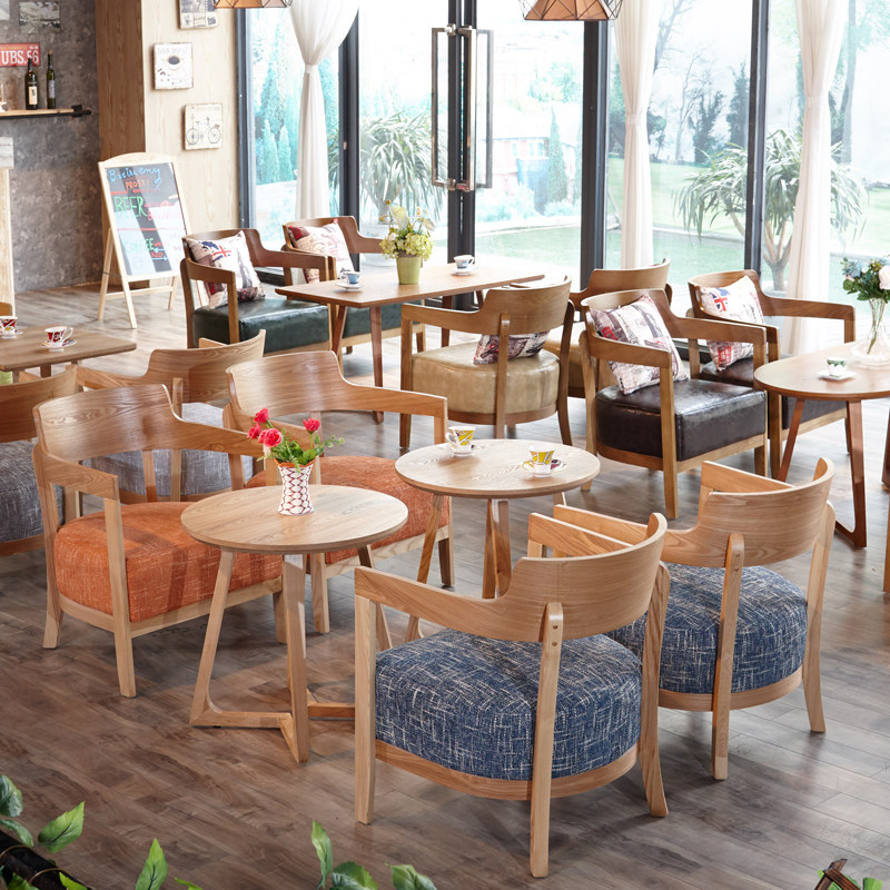 Simple Milk Tea Shop Casual Seat Book Bour Зал за комнатой с твердым деревом стул Кофейня для отдыха, чтобы договориться о комбинации стола и стула