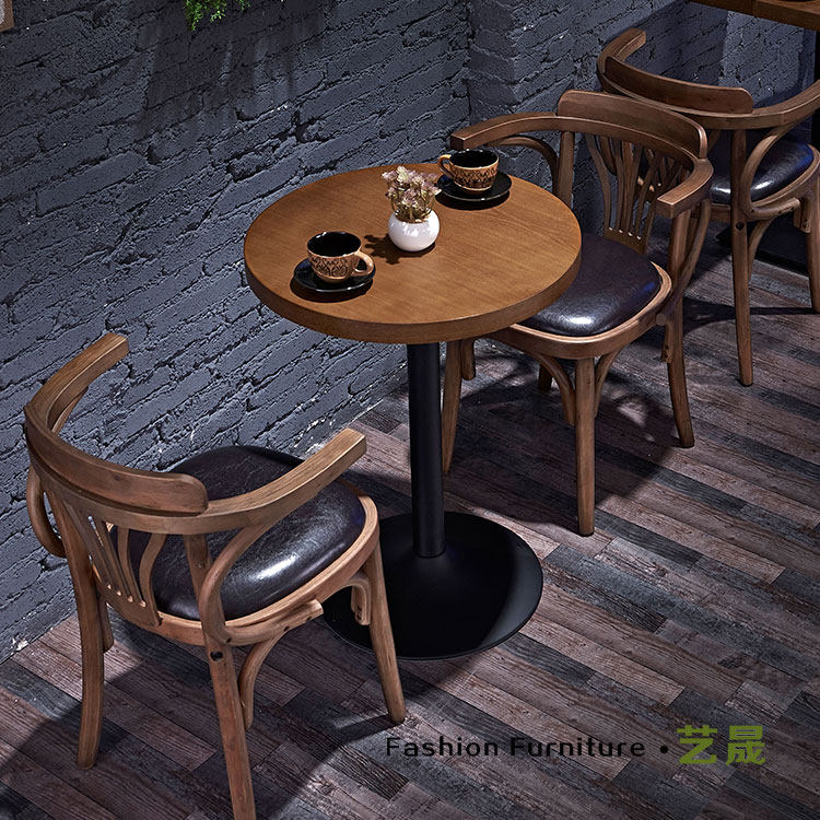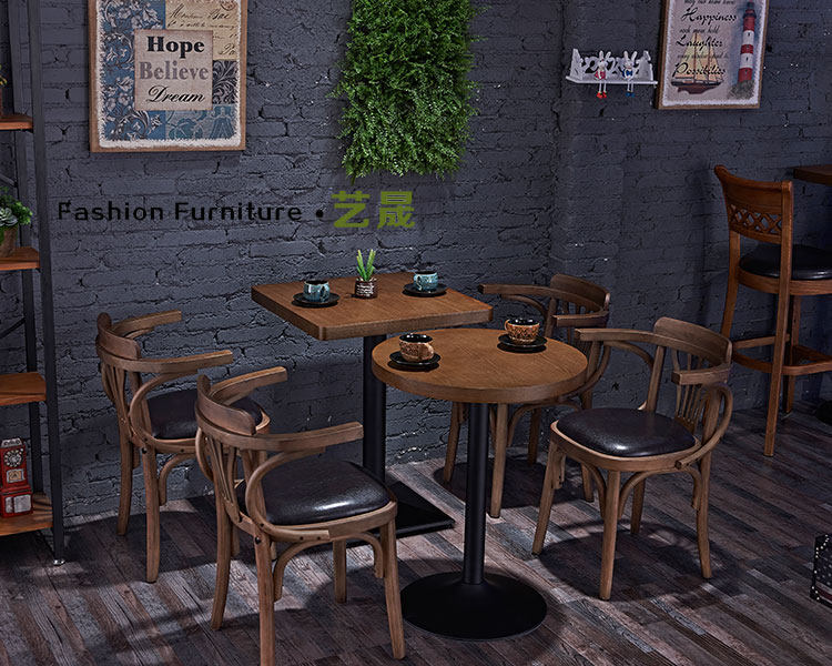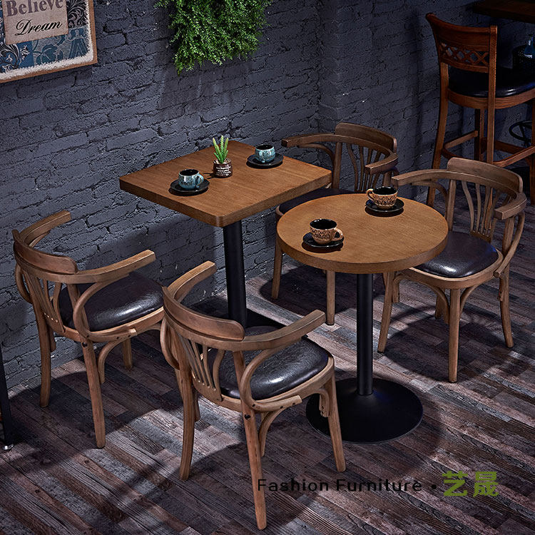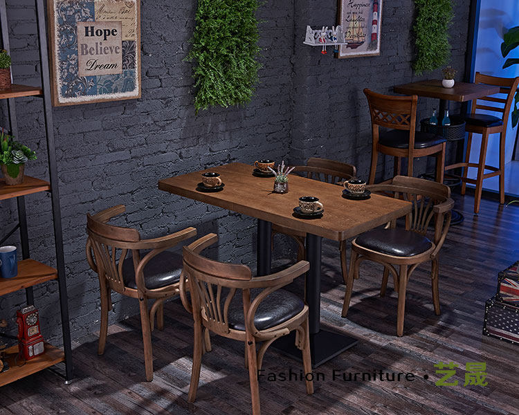 Стол кафе с твердым древесиной и стул Комбинированная Qingba Столк -барный стол