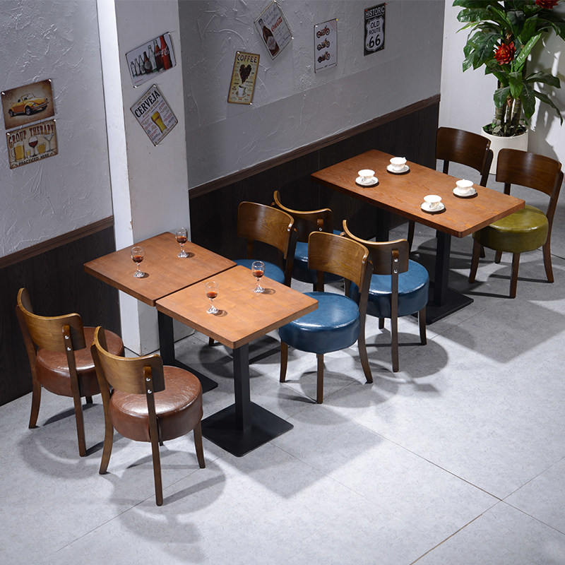 Офис продаж Стол для переговоров и стул Комбинированный дубовый обеденный стул Магазин чая с молоком Магазин напитков Один стол Два стула Ресторан западной кухни Квадратный стол