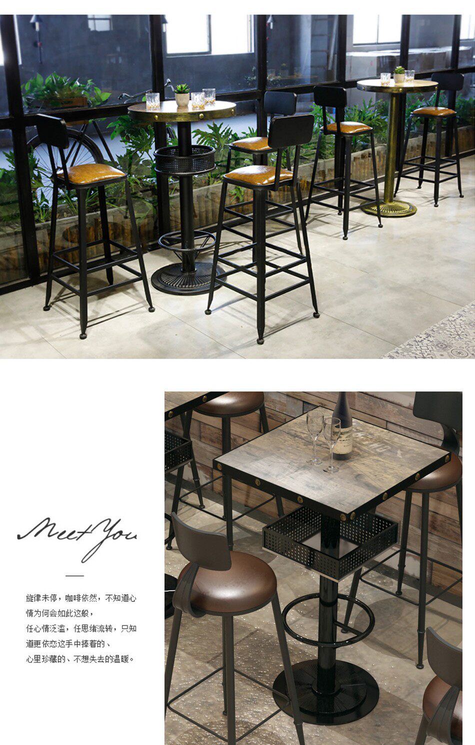 Пользовательский бар разбросанный бар, стол, стул Комбинированный ретро -высокий стол Jingba Clear Bar Clear Bar Мрамор на стене Barbar Table
