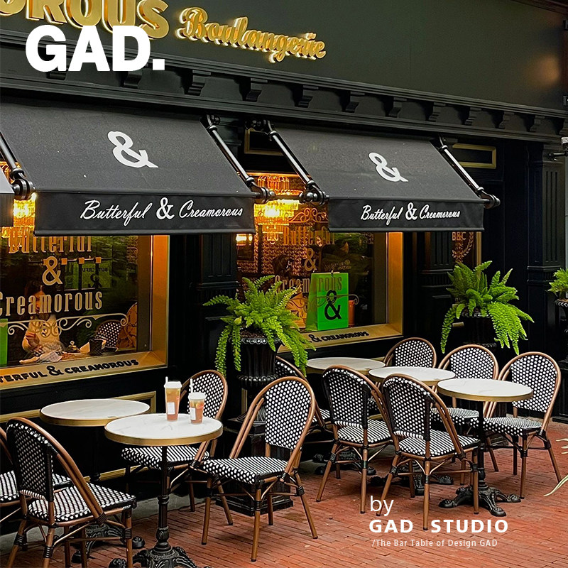 Gad Bar Qing Bar Cafe Cafe Restaurant Western Restaurant Western Restaurant Online Red Shop French Retro Rattan Компиляционный стол и комбинация стул