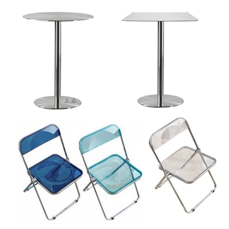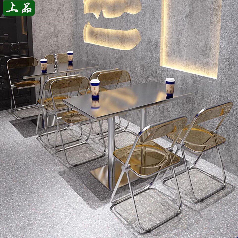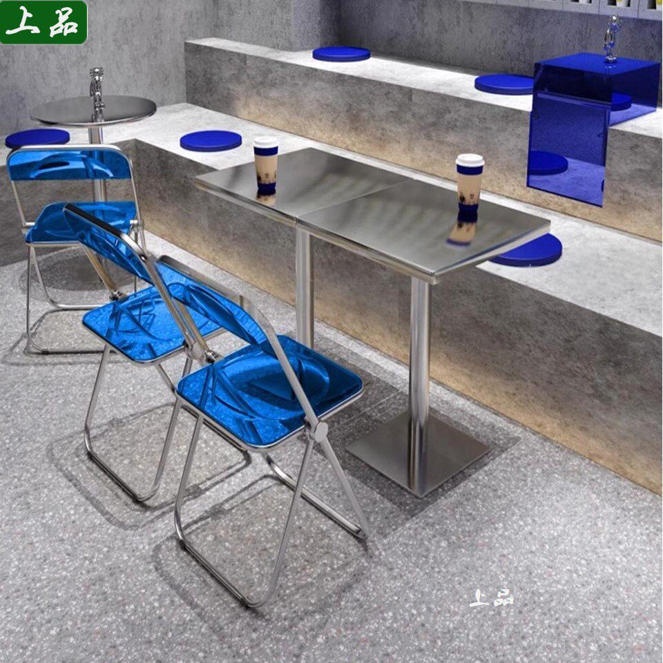 Столы и стулья из нержавеющей стали Интернет-магазин знаменитостей, десертный магазин, сочетание стульев в индустриальном стиле, прозрачный складной стул, стул для закусочной, чая с молоком