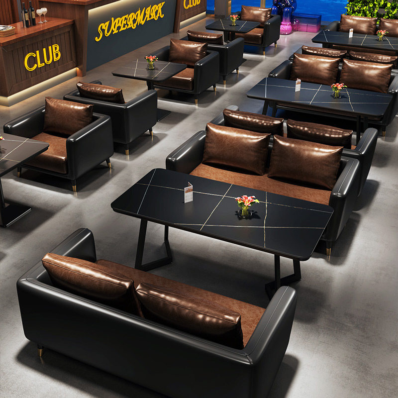 Бар диван Qingba Cafe Retro Industrial Wind Bargebue Restaurant Card Card Dofa Barlus Paper Table Table Комбинация