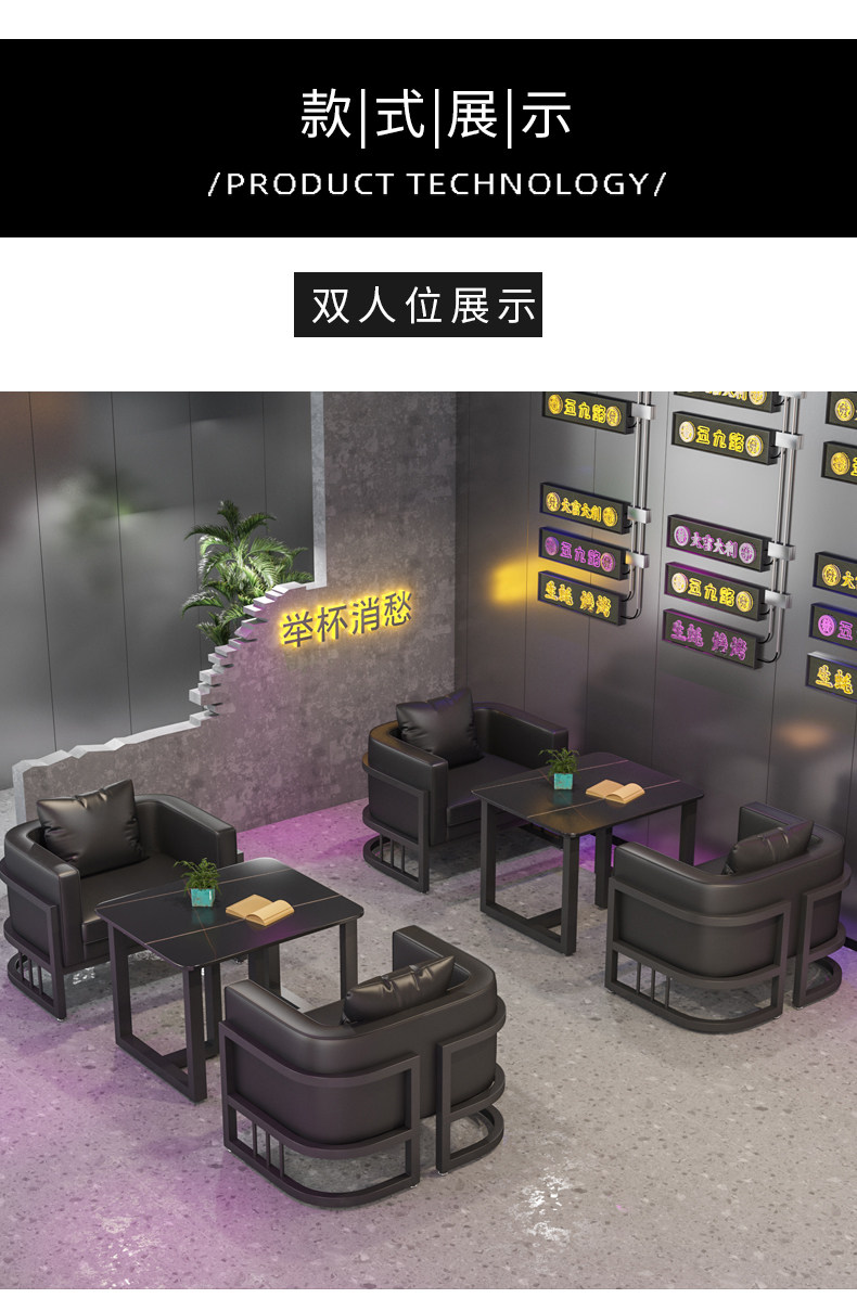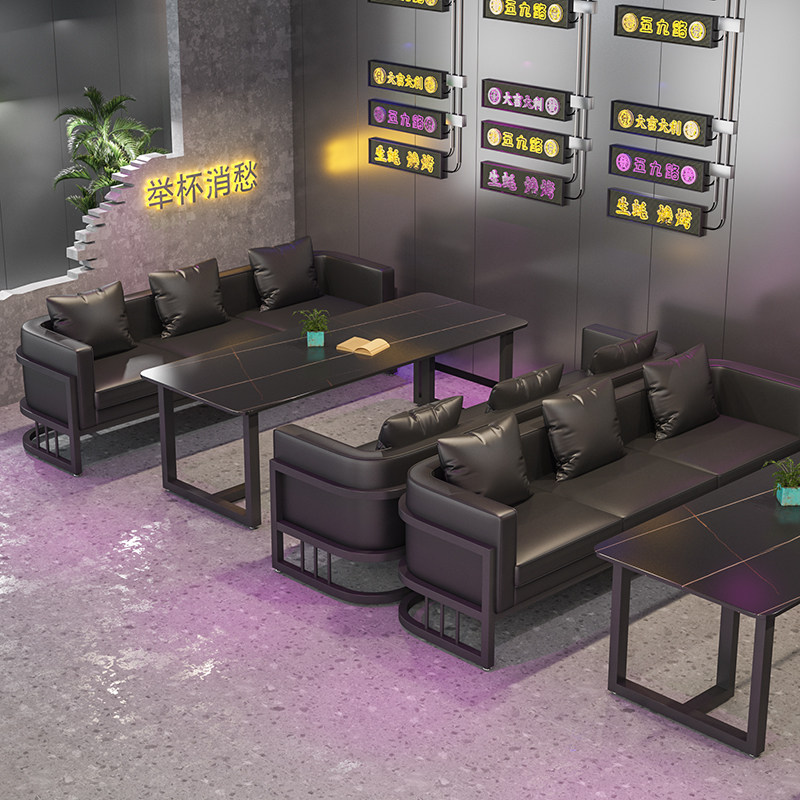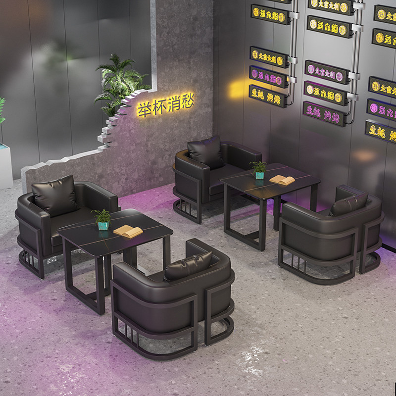 Бар, стол и стул Комбинация Qingba Tavern Milk Milk Tea Barbecue Restaurant Coffee Shop Western Restaurant Industrial Wind Коммерческая карта диван