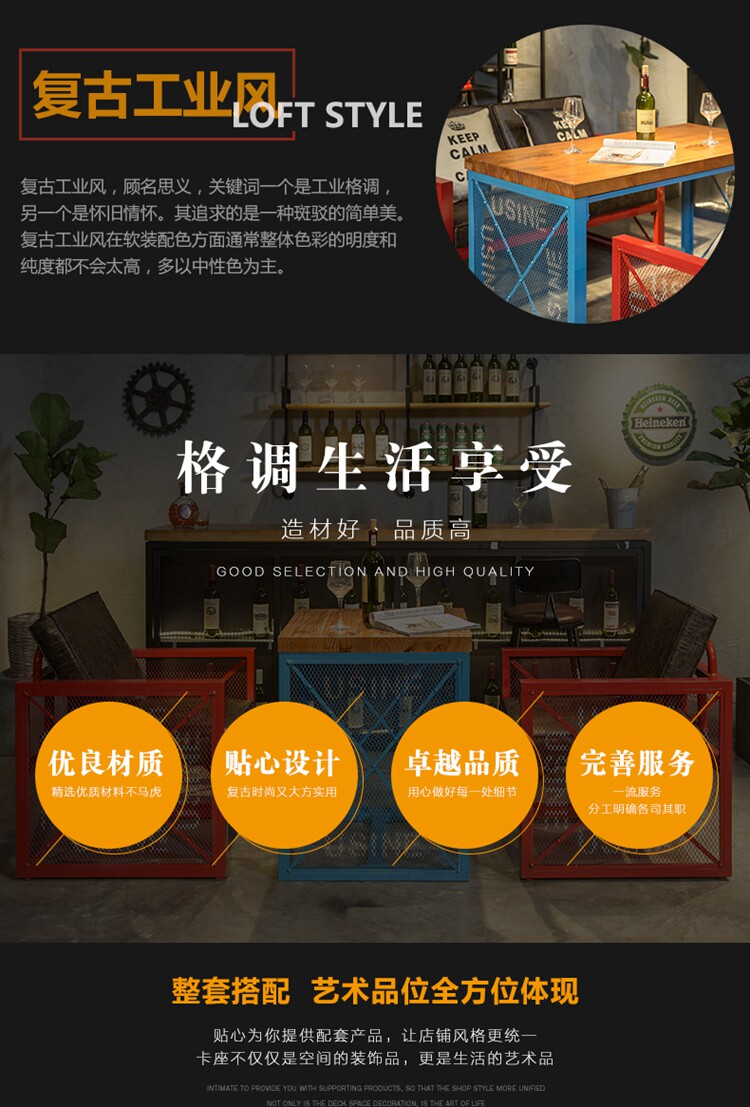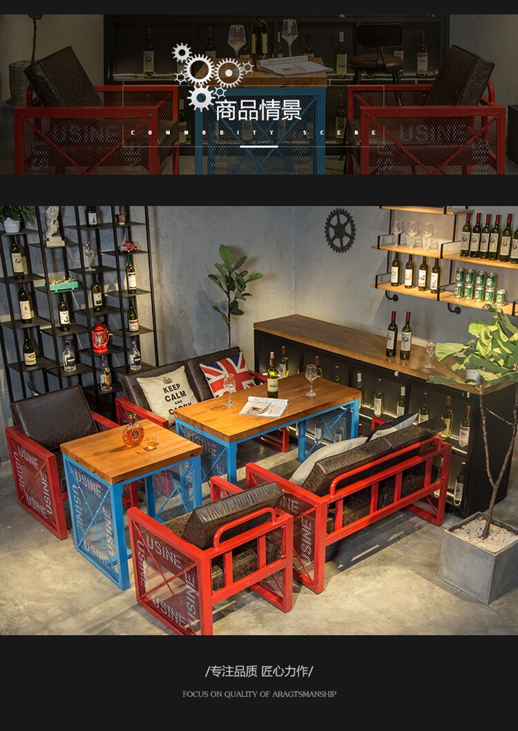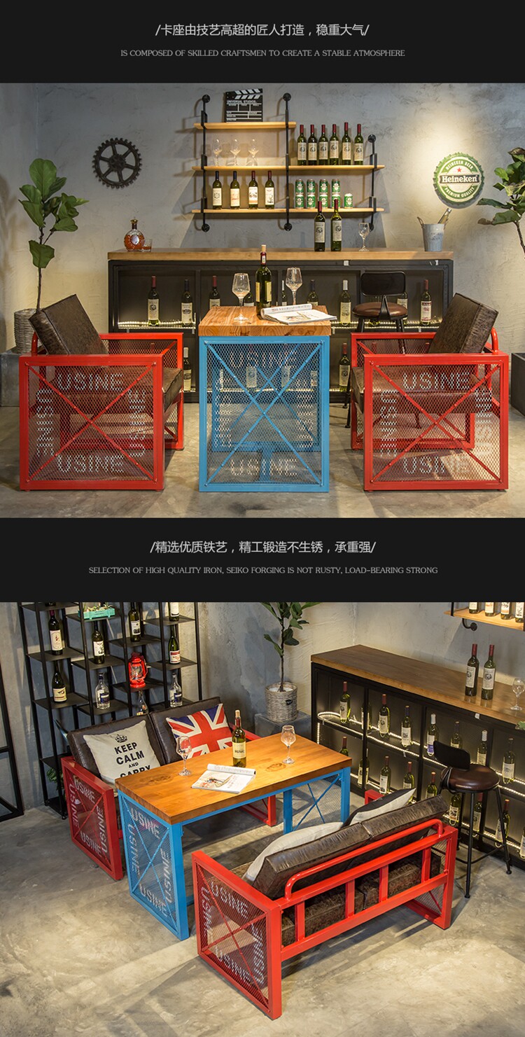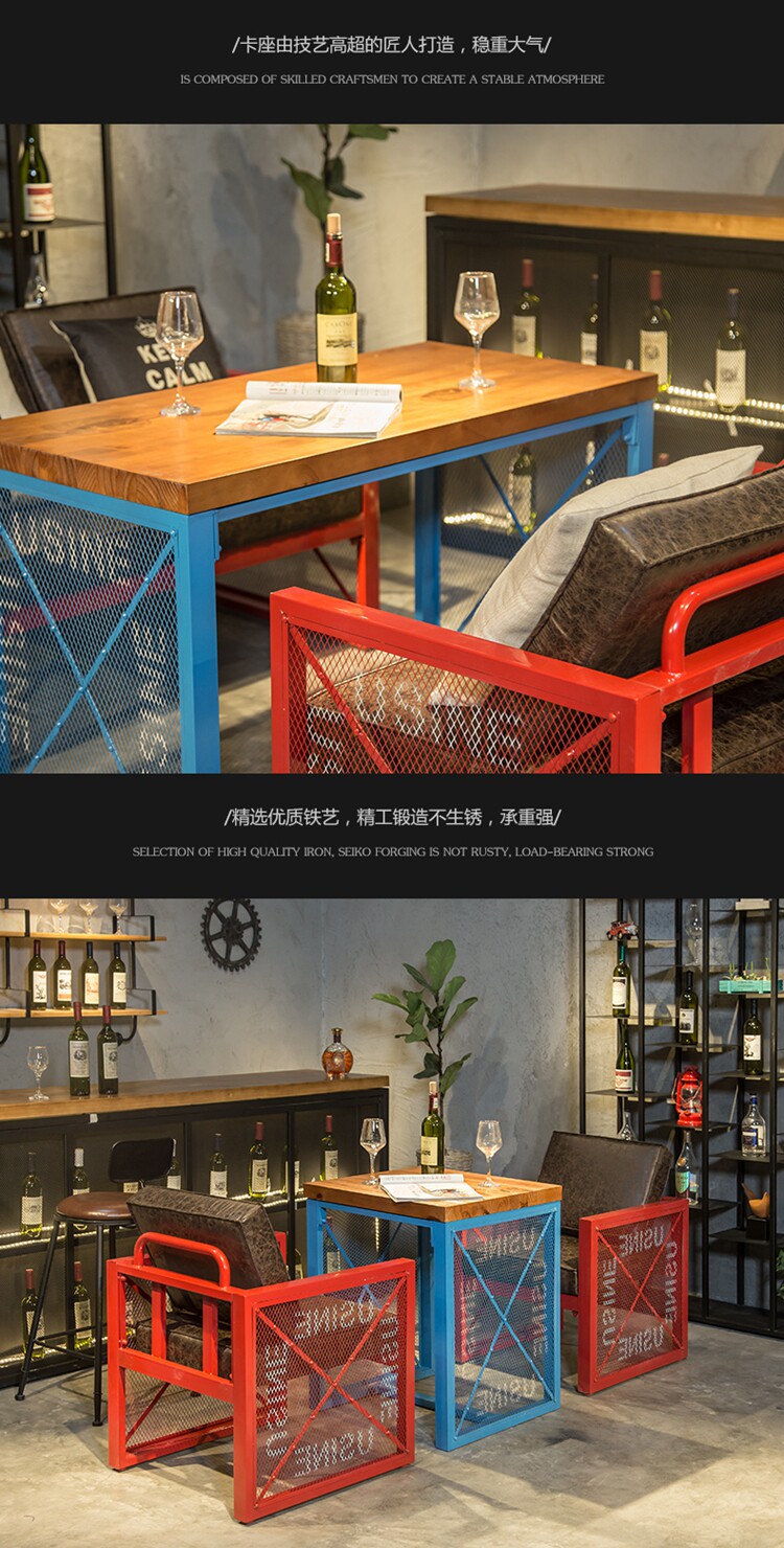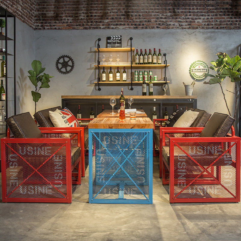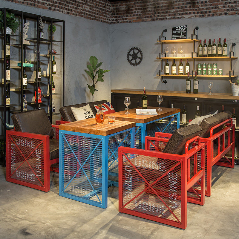 Американский ретро -лофт промышленного стиля обеденный стол и стул диван западный ресторан кофейня Железное искусство винный стол и комбинация стула