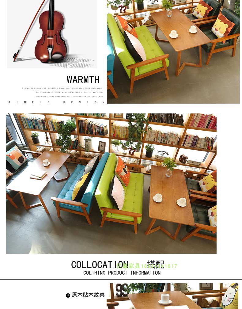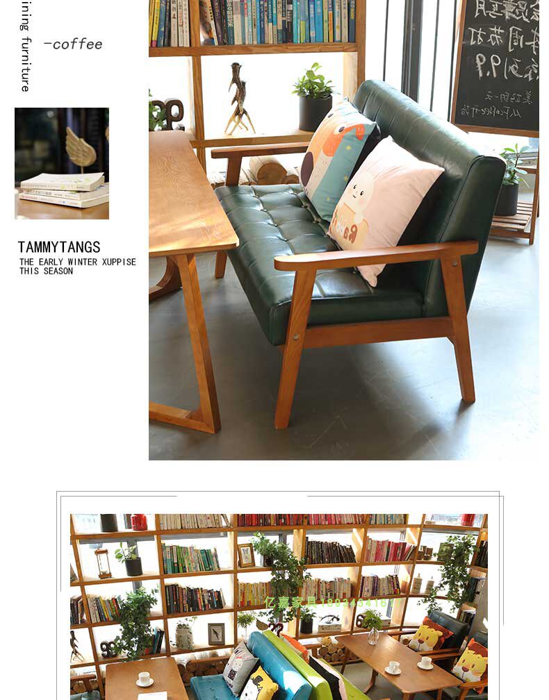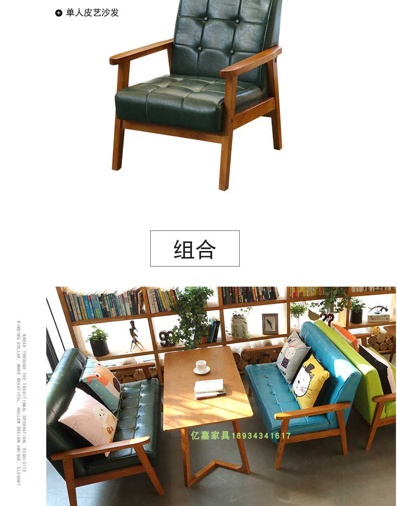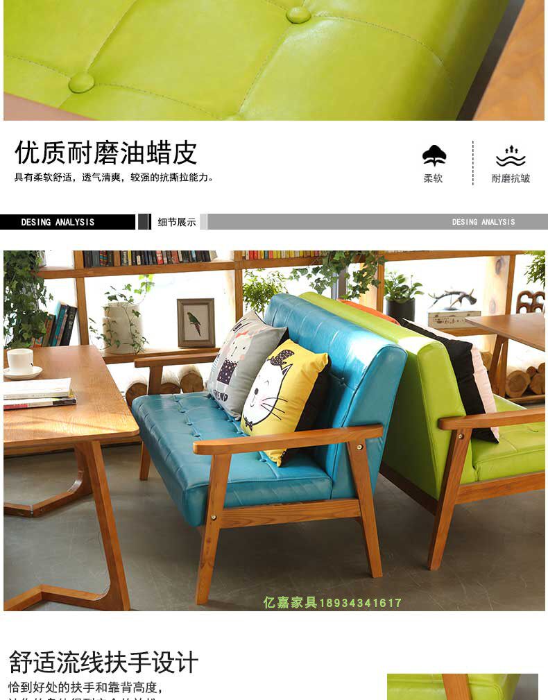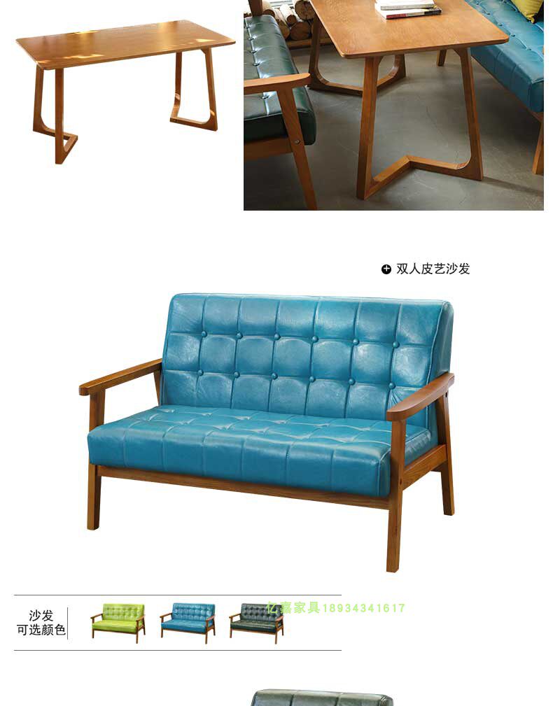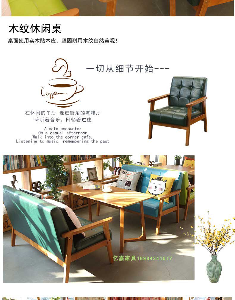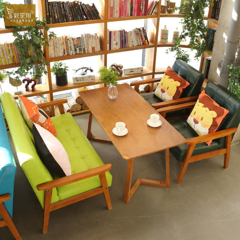 Скандинавский кожаный диван для кафе, офисные переговоры, простой повседневный стенд из цельного дерева, десертный чайный магазин с молоком, комбинация стола и стула