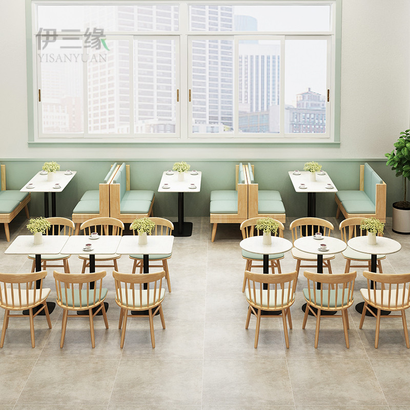 Стол магазина с молочным чаем и стул Коммерческий обеденный стол гамбургский магазин ресторан ресторан мебель сеть красный цвет на стенах.