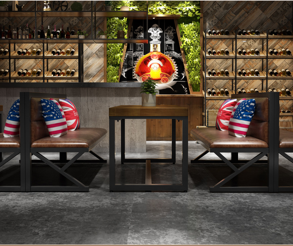 Американский ресторан в промышленном стиле против стены карт диван, антикварные железные кафе бары Музыкальный батончик и комбинация стула