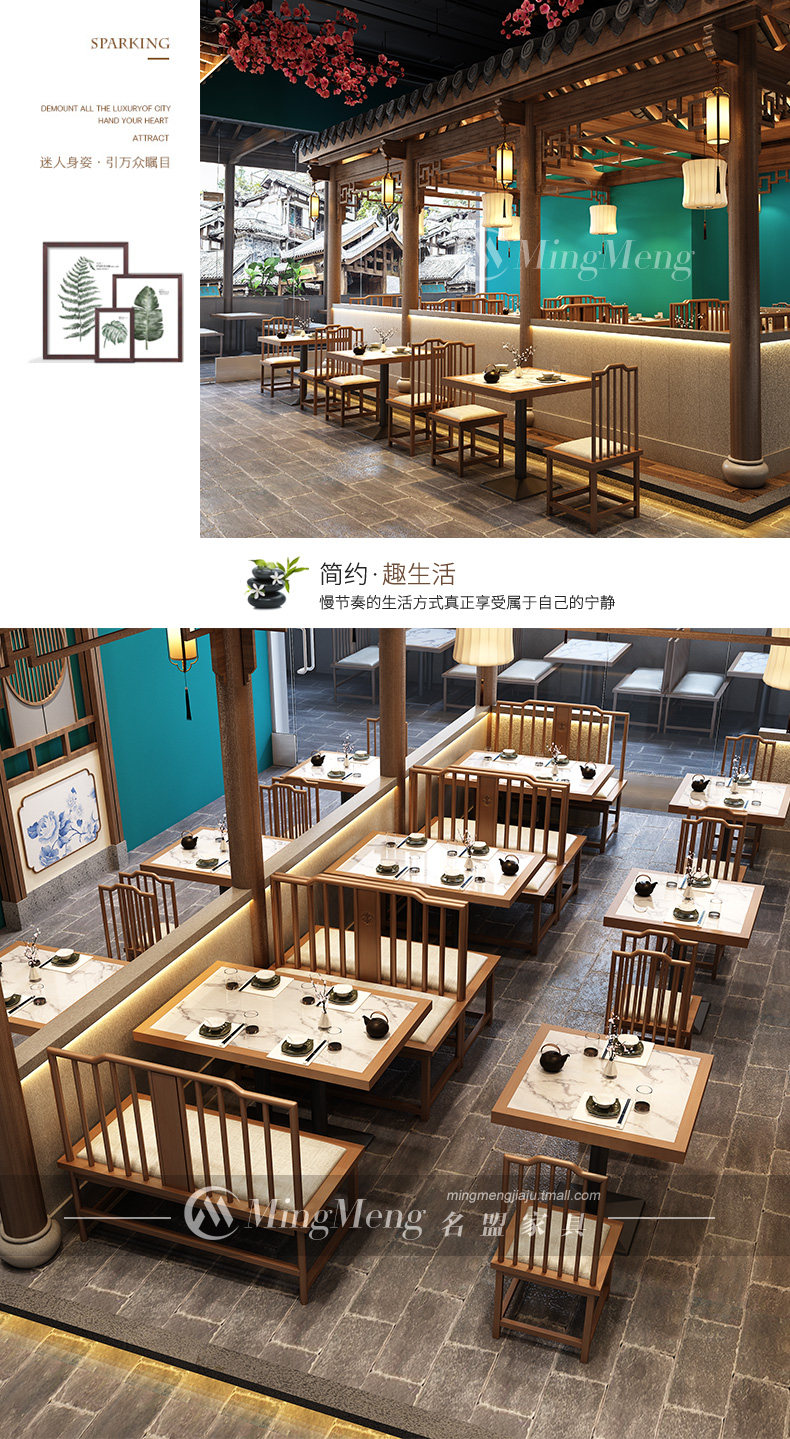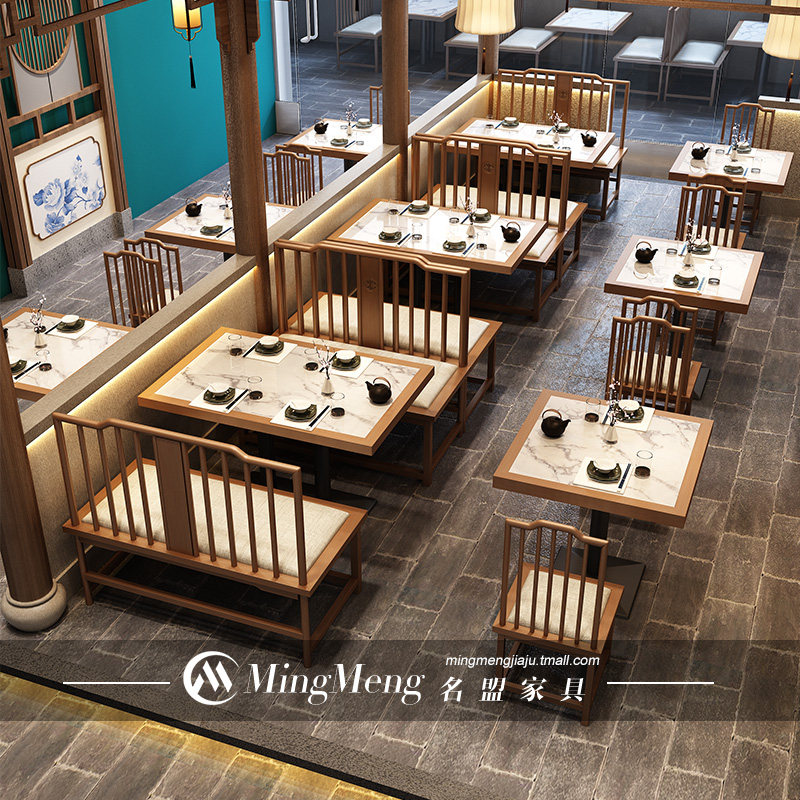 Современные новые китайские карты сиденья диван -диван -ресторан ресторан ресторан ресторан столовая сплошные деревянные столы и стул Комбинированный чай