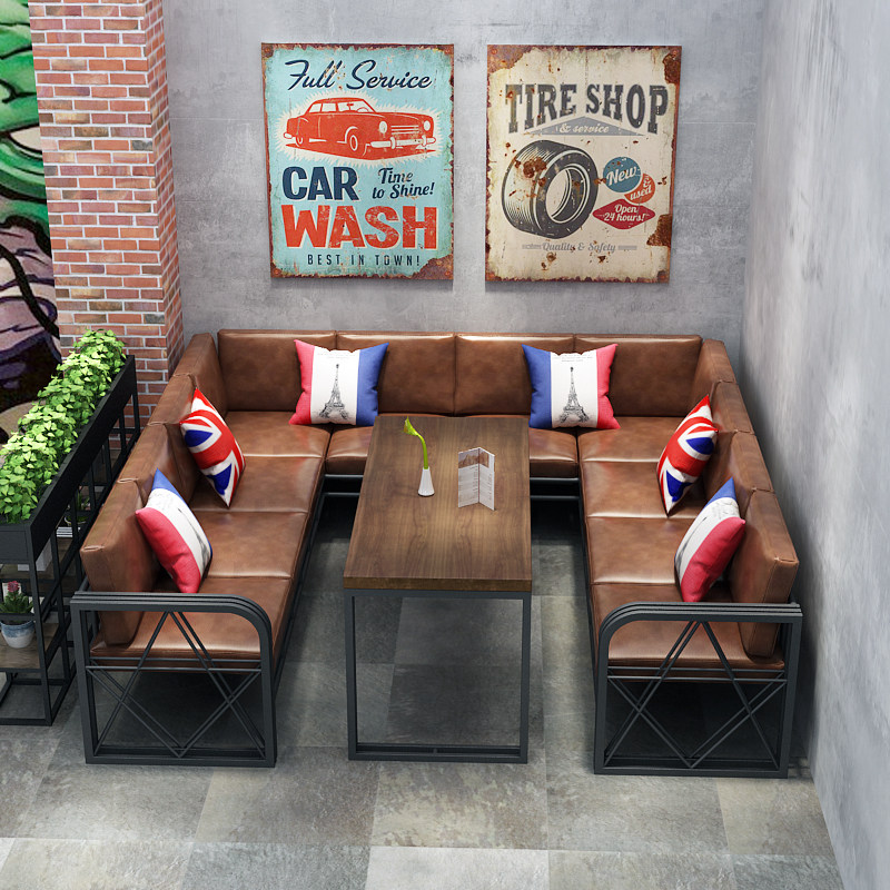 Американский ретро промышленного стиля ресторан Coffee Bar Ktv Card Seat Back -Корнер SOFA Стол и стул Lu -тип