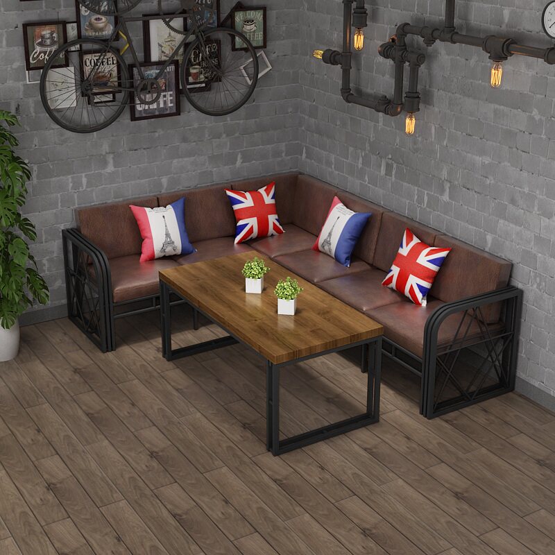 Американская ретро -индустрия Wind Clear Bar Coffee Shop Ktv Card Seat Custom Turn Turn Corner Corner Lu -Type Стол и Комбинация стула