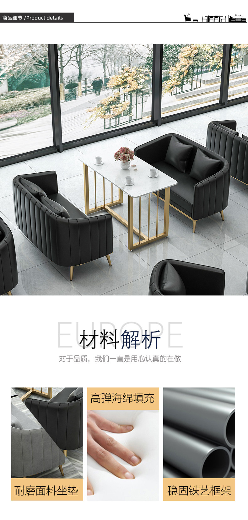 Простой десертный молочный чайный столик и комбинированные стулья Бизнес переговоры о западном ресторане Leisure Bar Double Card Cafe диван