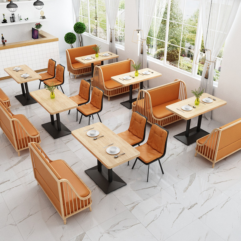 Стол для чайного чая с твердым деревом и стул Десерт Магазин барбекю Western Restaurant Card Cafe Cafe, комбинация коммерческого табурета SOFA