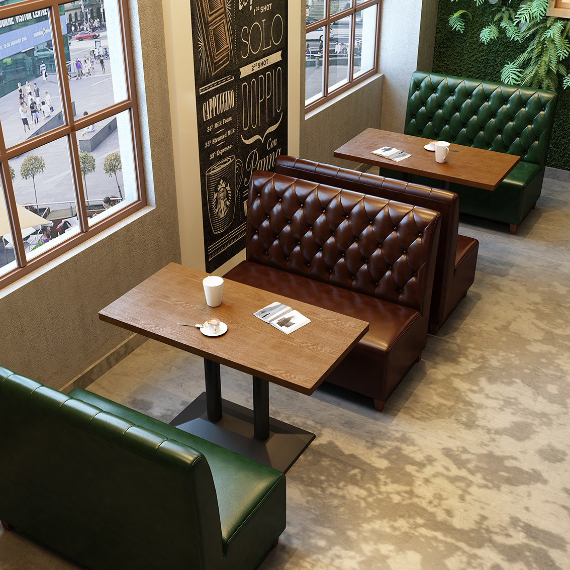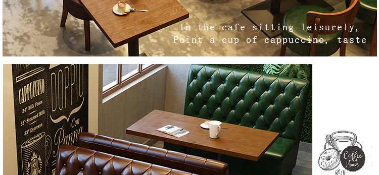 Кафе, двойной диван, бар, тихий бар Qingba, ресторан западной кухни, магазин десертов, магазин чая с молоком, комбинация стола и стула из массива дерева