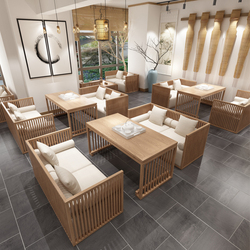 Новый китайский диван Комбинированный железо имитация деревянного зерна Light Luxury Restaurant Bar Casual Tea Tea Tab Стол сиденья сиденья
