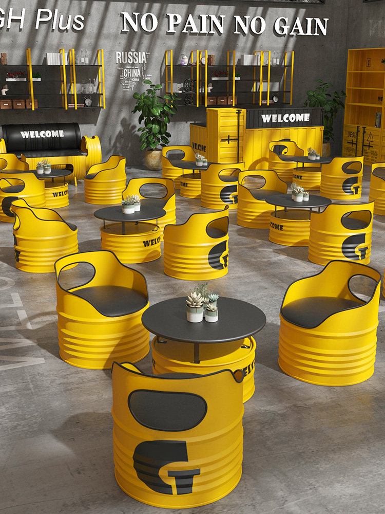 Creative Oil Barrel диван промышленного стиля сиденья карты Коммерческая барбекю для чайного чая в студии Обсудите столы и комбинации стульев