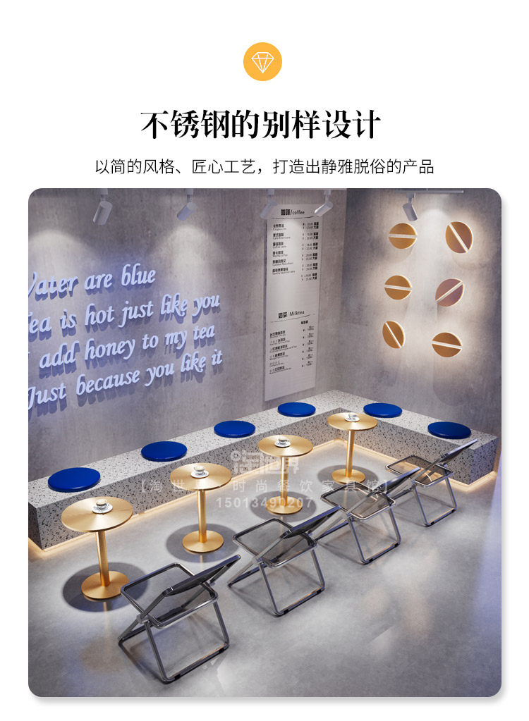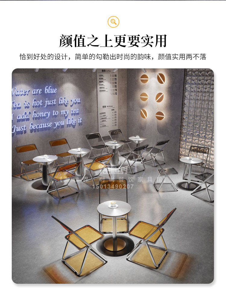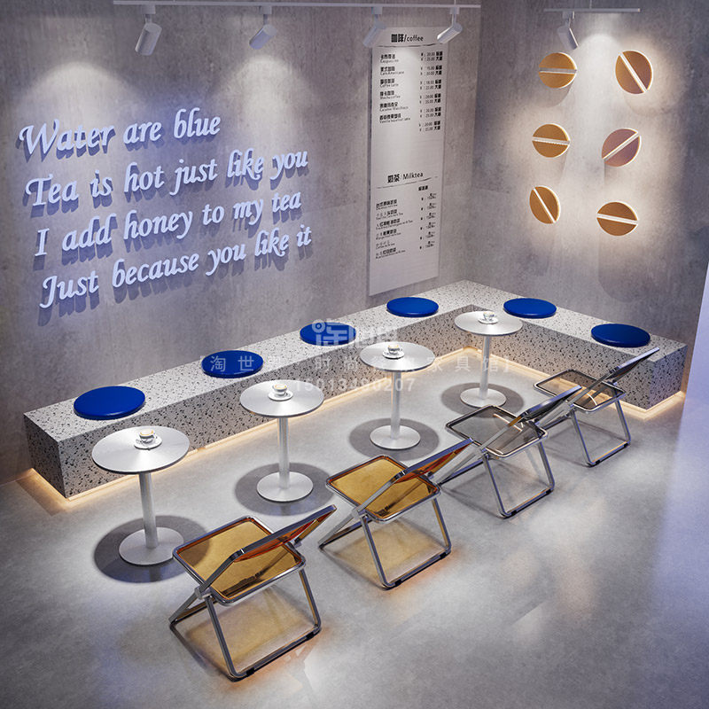 Десертный магазин, магазин чая с молоком, стенд, диван, кафе, пекарня, промышленный стиль, прозрачный складной обеденный стул из нержавеющей стали, комбинация