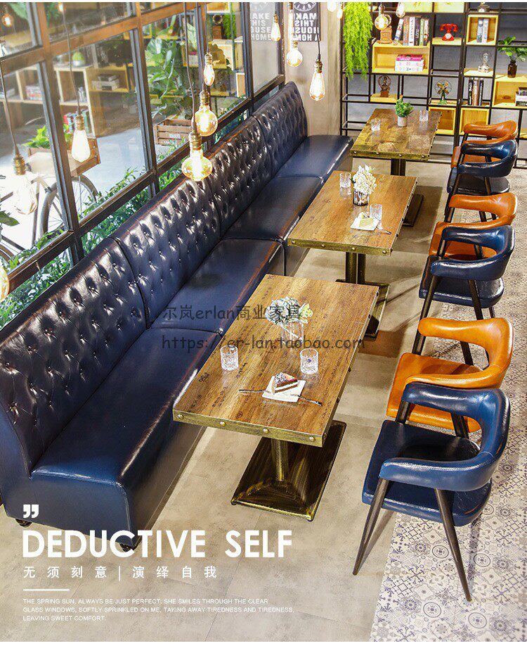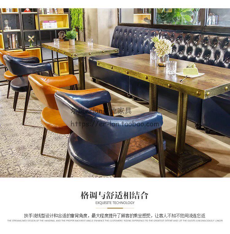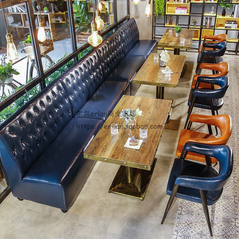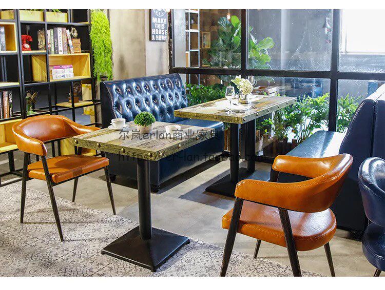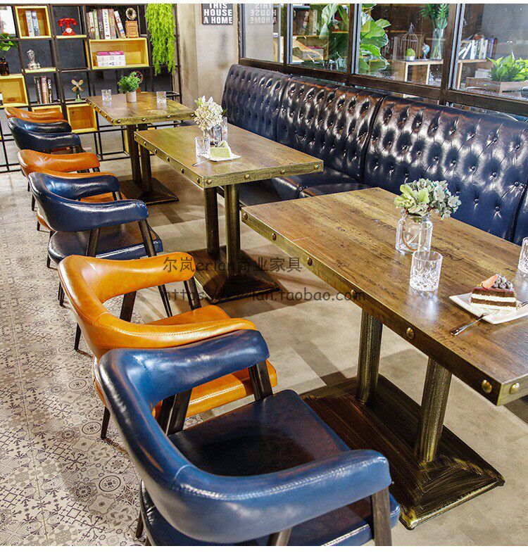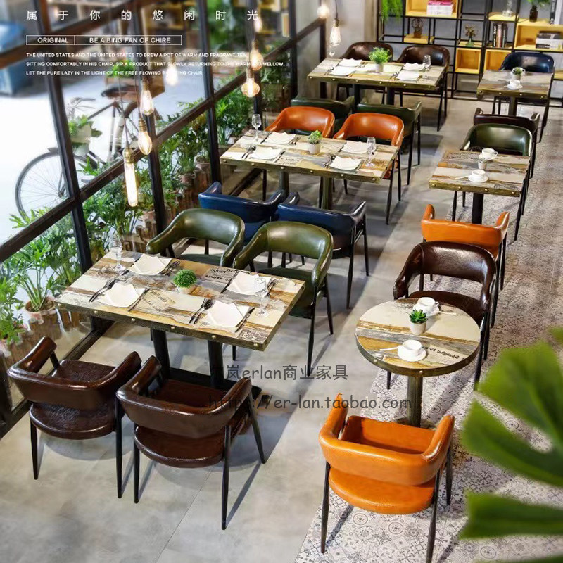 Retro Qing Bar Milk Tea Store Cafe Cafe Cafe Theme Restaurant Restaurant Barbecue Table Стул Кейтеринг Catering Commercial Table