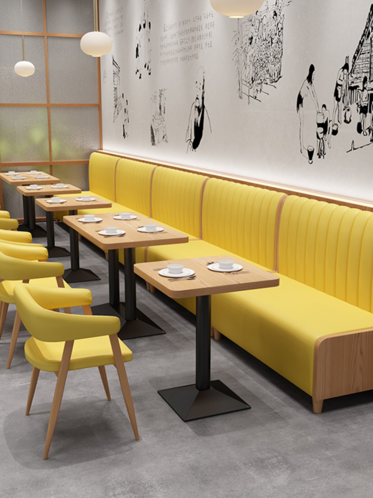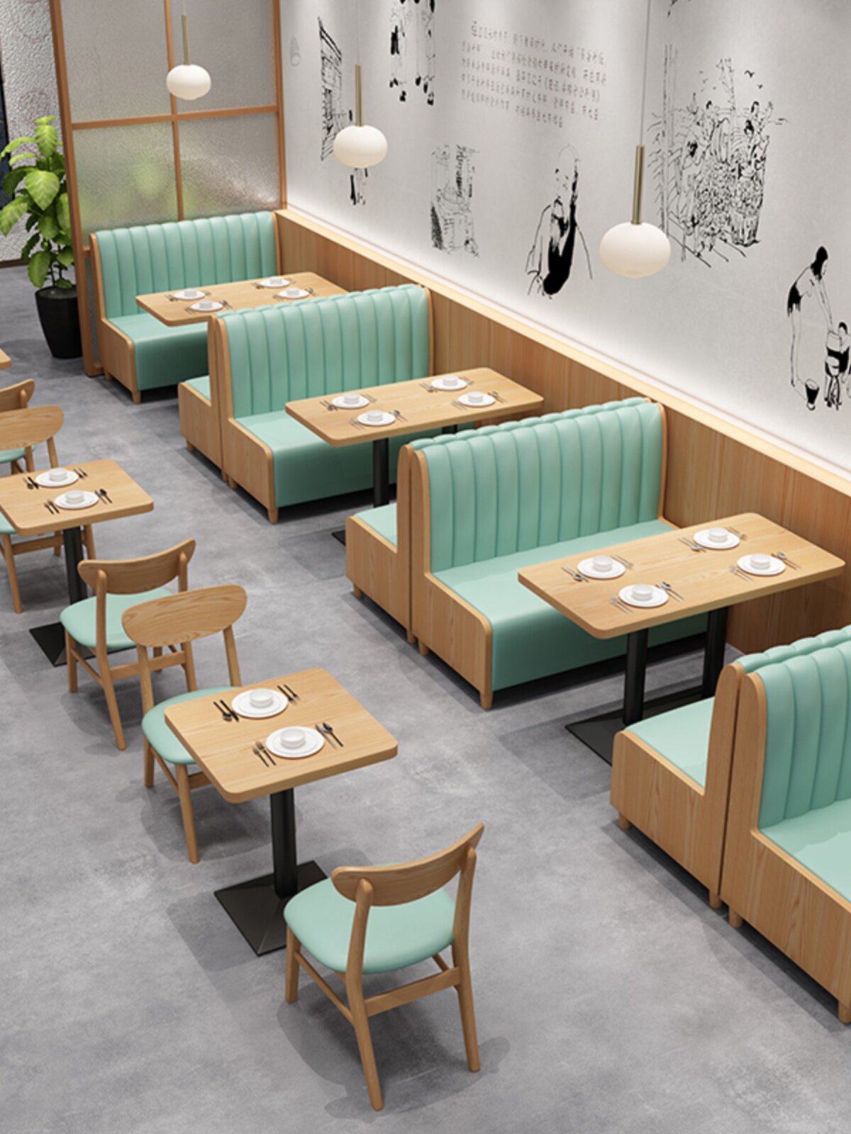Индивидуальный магазин чая с молоком, полукруглый палубный диван, кафе, настенный диван из цельного дерева в западном стиле, простой двойной обеденный стол и комбинация стула