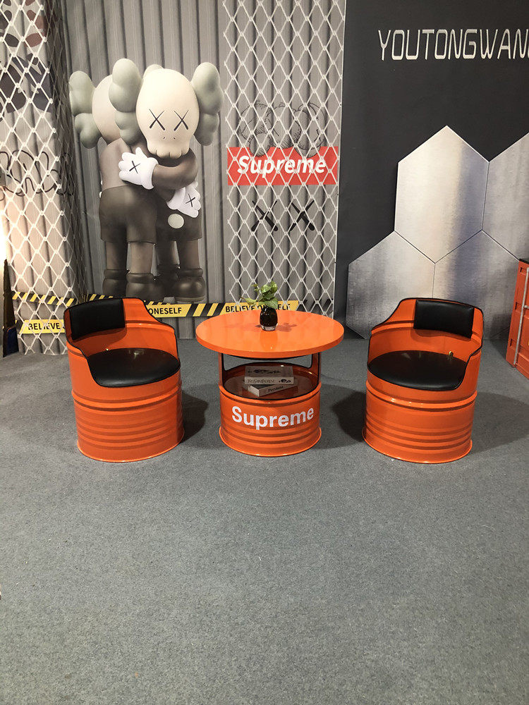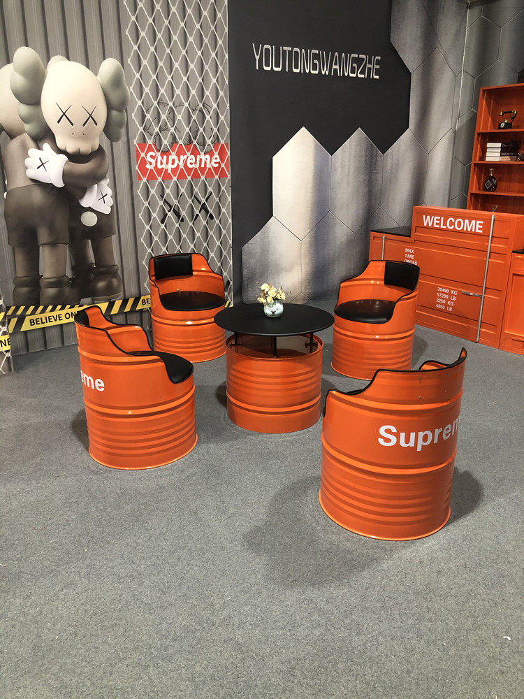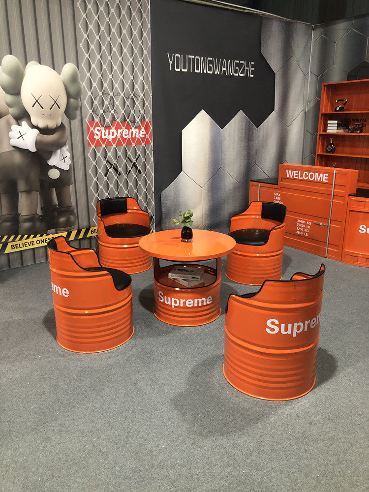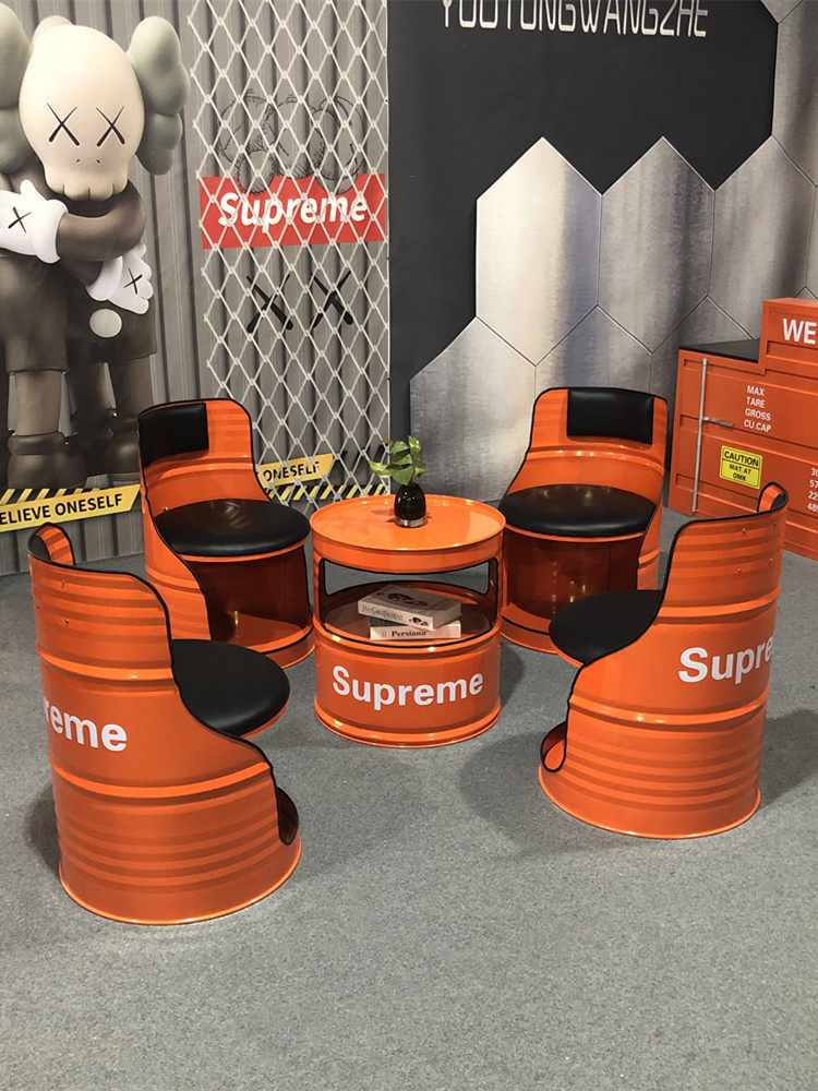 Индустриальная ветряная бара музыка прозрачная ретро -радио -ресторан винный бочонок на диване барбекю магазин жареные столы Комбинация стула