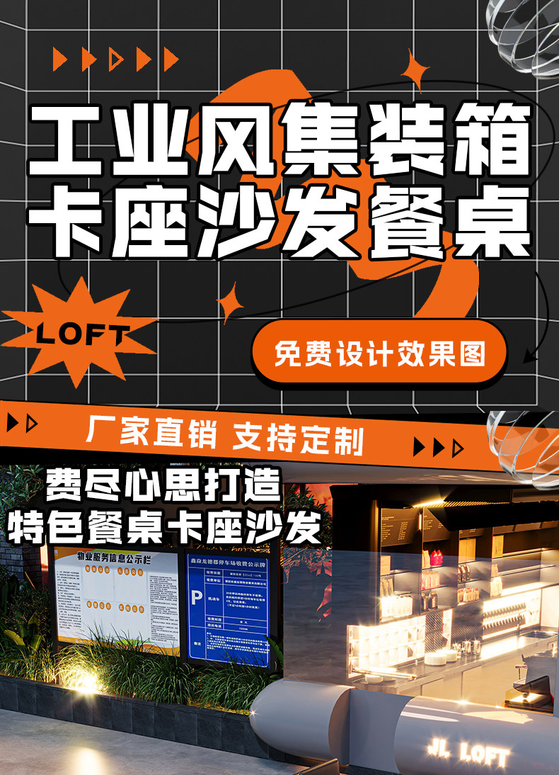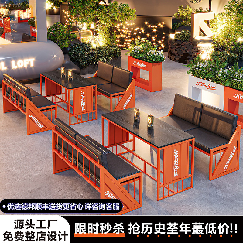 Ретро индустриальный стиль, железный контейнер, палуба, диван, таверна, кофейня, магазин чая с молоком, обеденный стол и стул, комбинация коммерческого