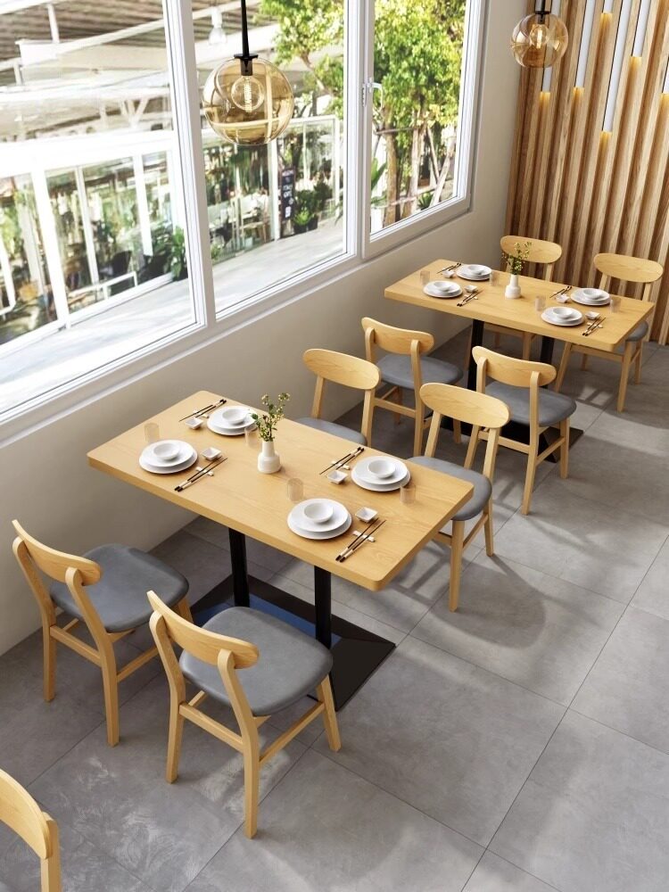 Терраса для ресторана, столы и стулья из массива дерева, диван, коммерческий магазин лапши на заказ, западный кейтеринг, чай с молоком, десерт, пельмени, комбинация магазина горячих горшков