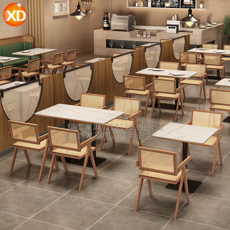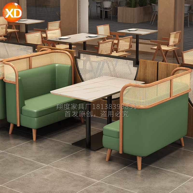 Коробка сиденья диван с тканом стул с твердым деревом ротанга двойной чайхаус ресторан кофе для барбекю ресторан китайский и западный ресторан и комбинация стула