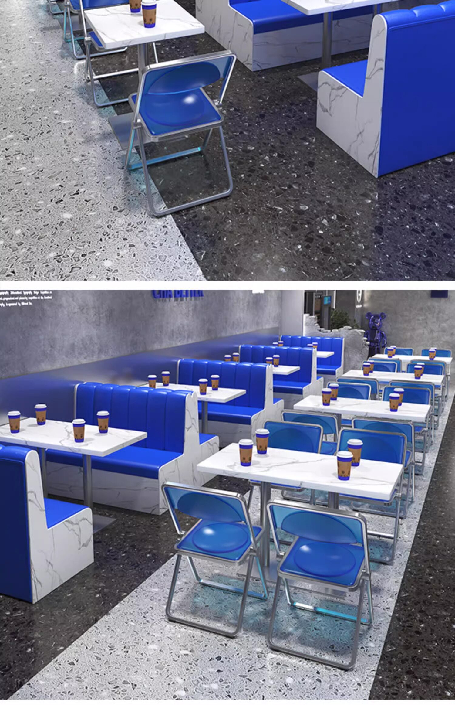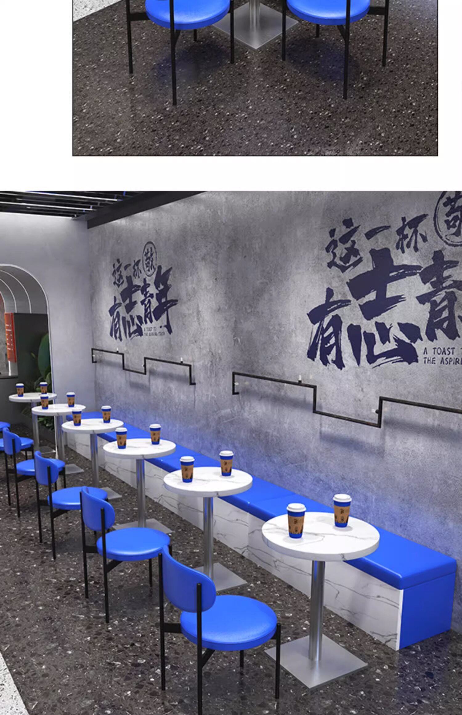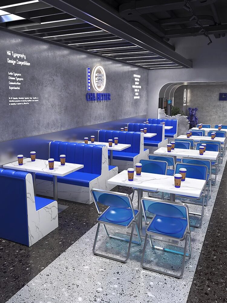 Индустриальный стиль, магазин чая с молоком, стенд, диван, десерт, кофе, западный ресторан, торт, десерт, акрил, синий Кляйн, стол и стулья