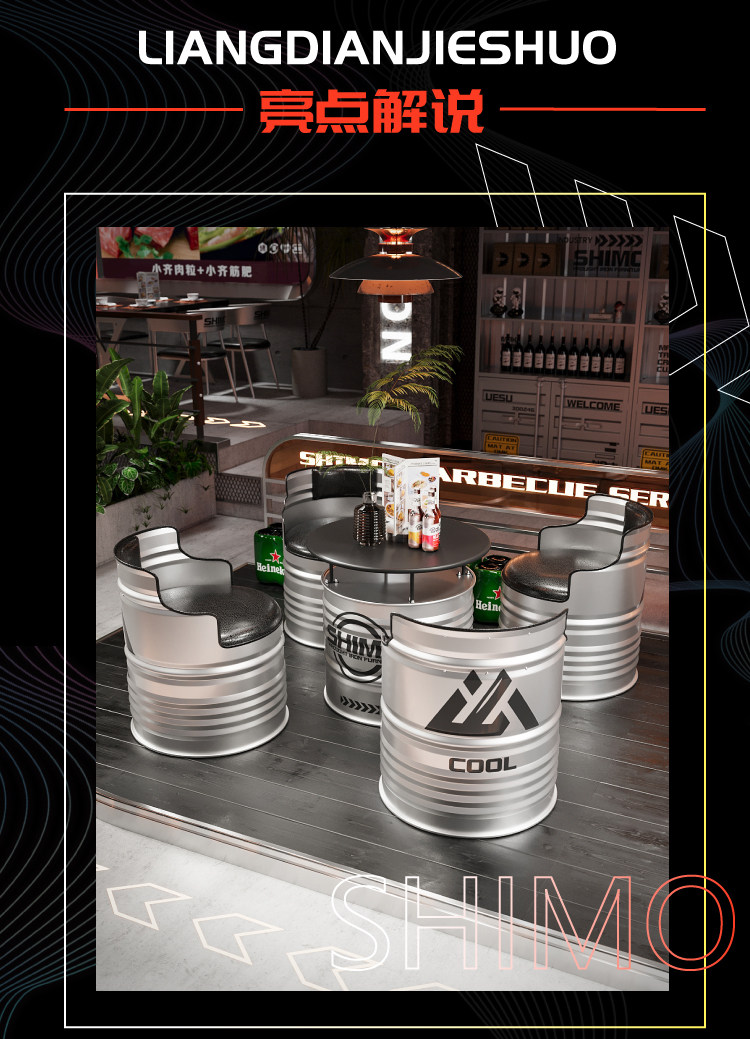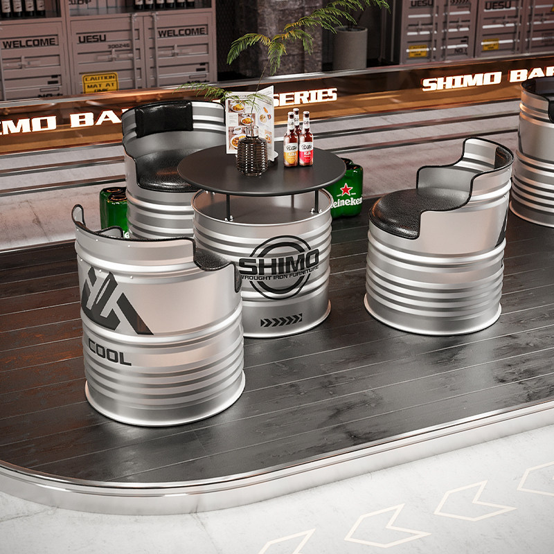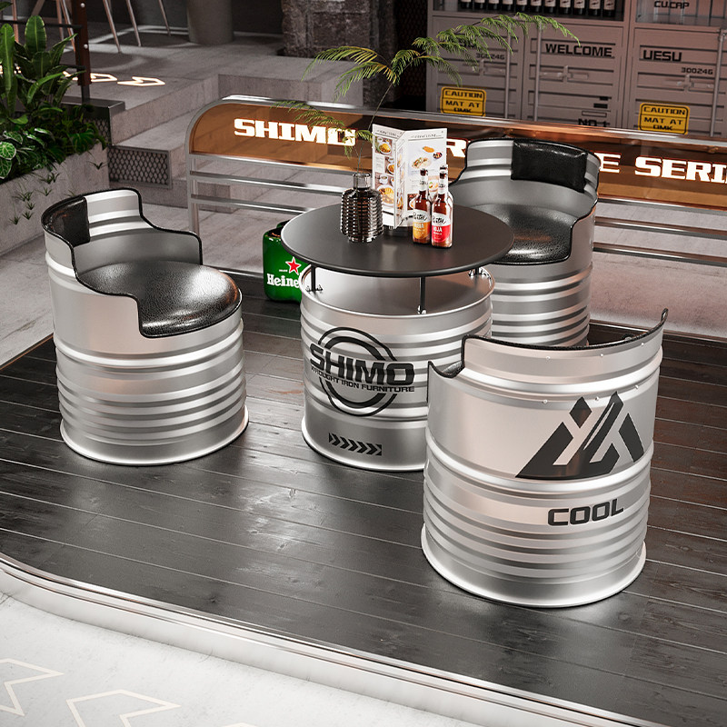 Масляная бочка в индустриальном стиле, уличный диван, стол и стул, креативный железный бар, стол для чая с молоком, комбинация стульев, журнальный столик, кафе