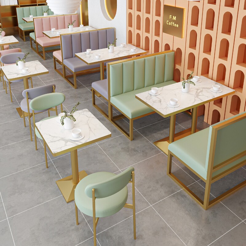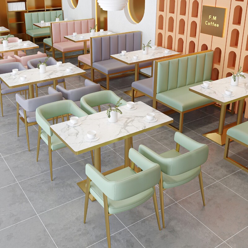 Стол магазина молока и стул Комбинированные десертные закуски питания бургеры кофе западные блюда для отдыха на стенах ресторана диван