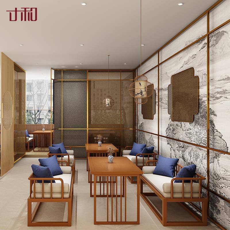 Guochao Chalou Catering Hotel Card Card Difa Диван с твердым деревянным столом и стул Комбинированность Новое китайское железное кафе Clear Bar