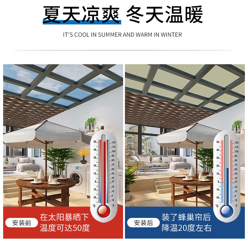 Солнечный домик затенение верхней изоляции соты ручной занавес