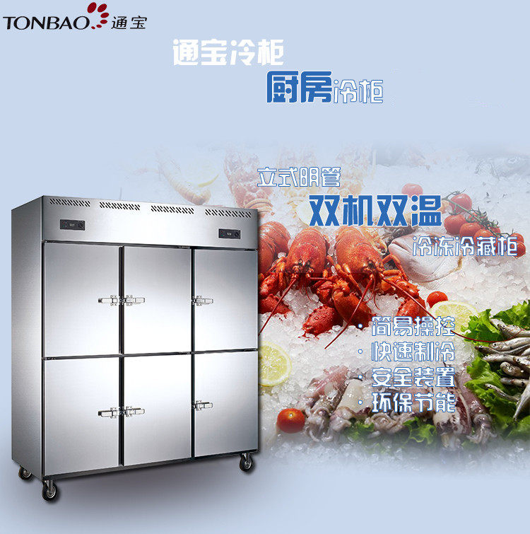 Tongbao ZB-1600L6M2 Six Men Ming Tube Double Machine Double Wild Coldet Коммерческий охлажденный морозильный шкаф кухонный шкаф