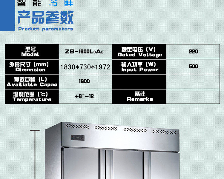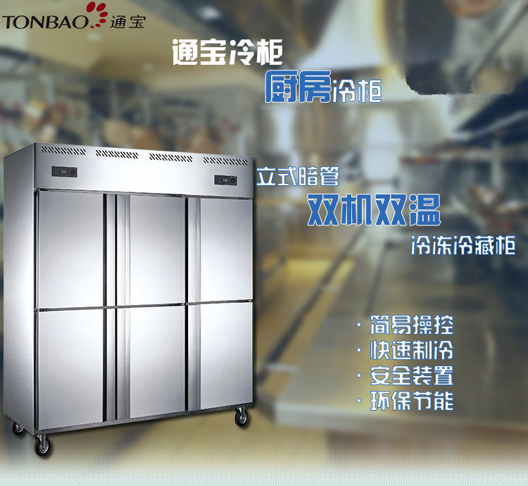 通宝 ZB-1600L6A2 шестидверный скрытая труба с двойной машиной с двумя температурными холодильниками Коммерческий холодильный холодильник кухонный холодильник