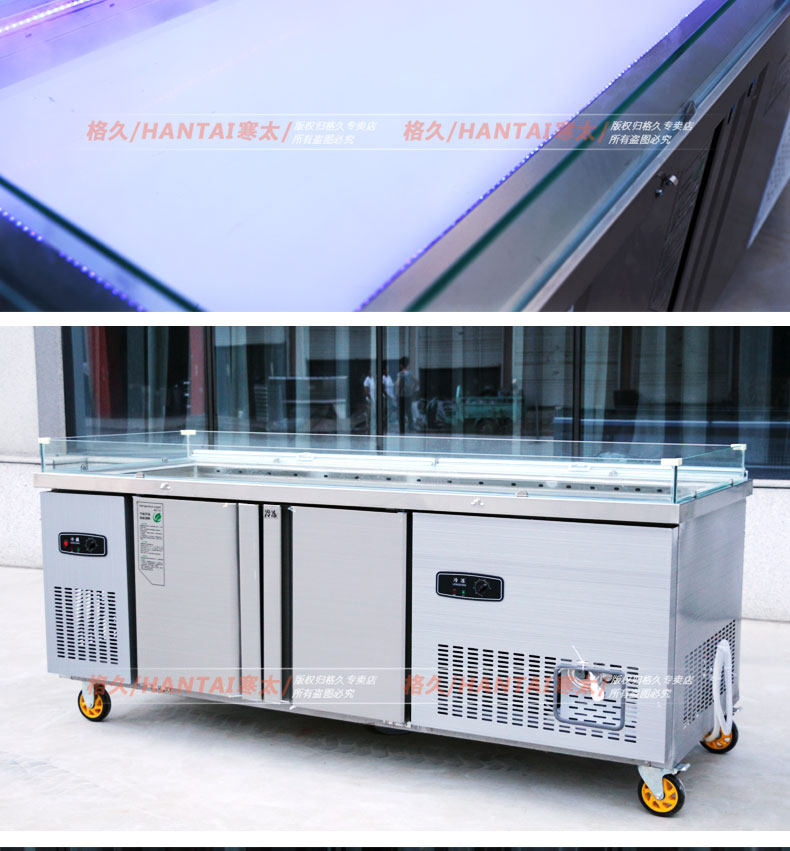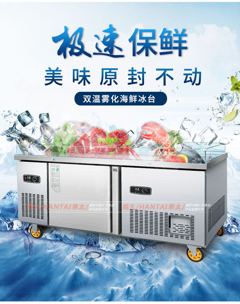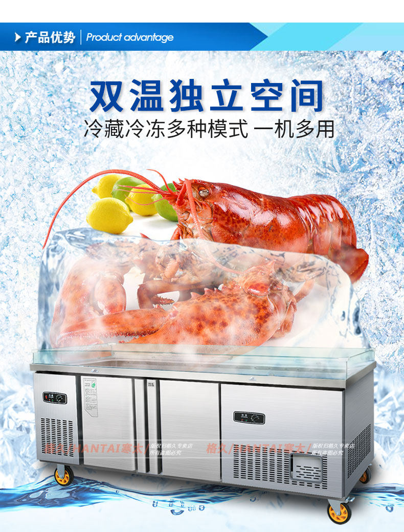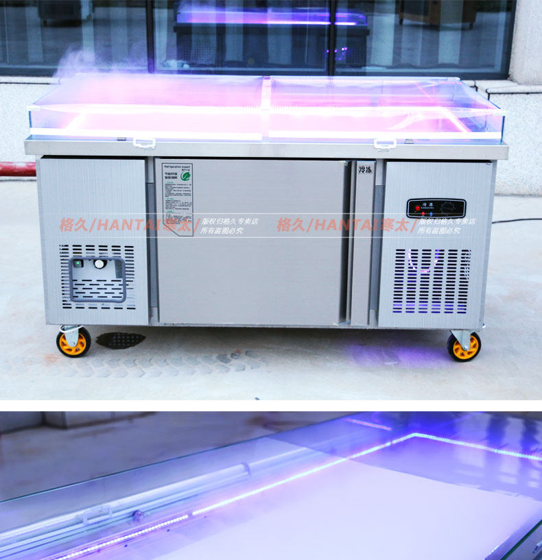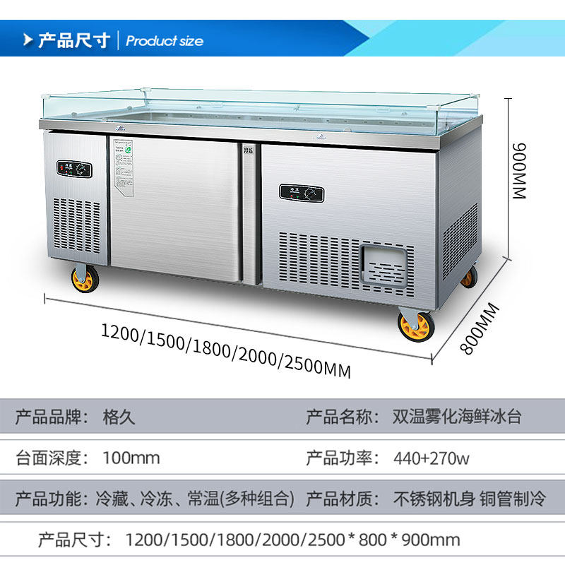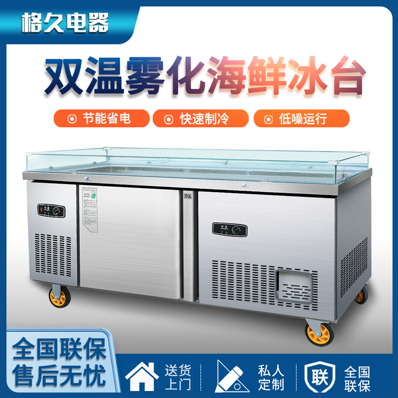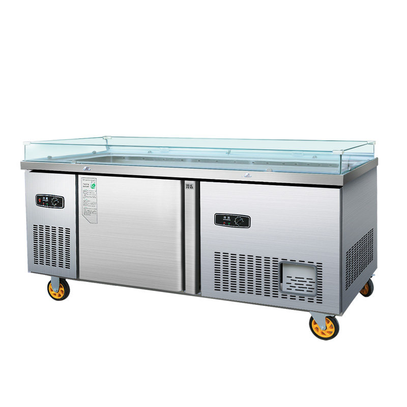 Двойная температура из нержавеющей стали. Атомированный ледовой стол горизонтальный холодильный дисплей супермаркет Барбекл Коммерческий деревянный зерновой фондовый шкаф