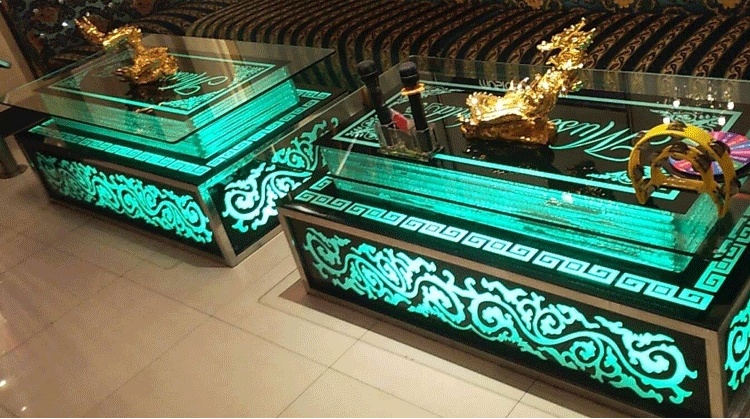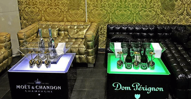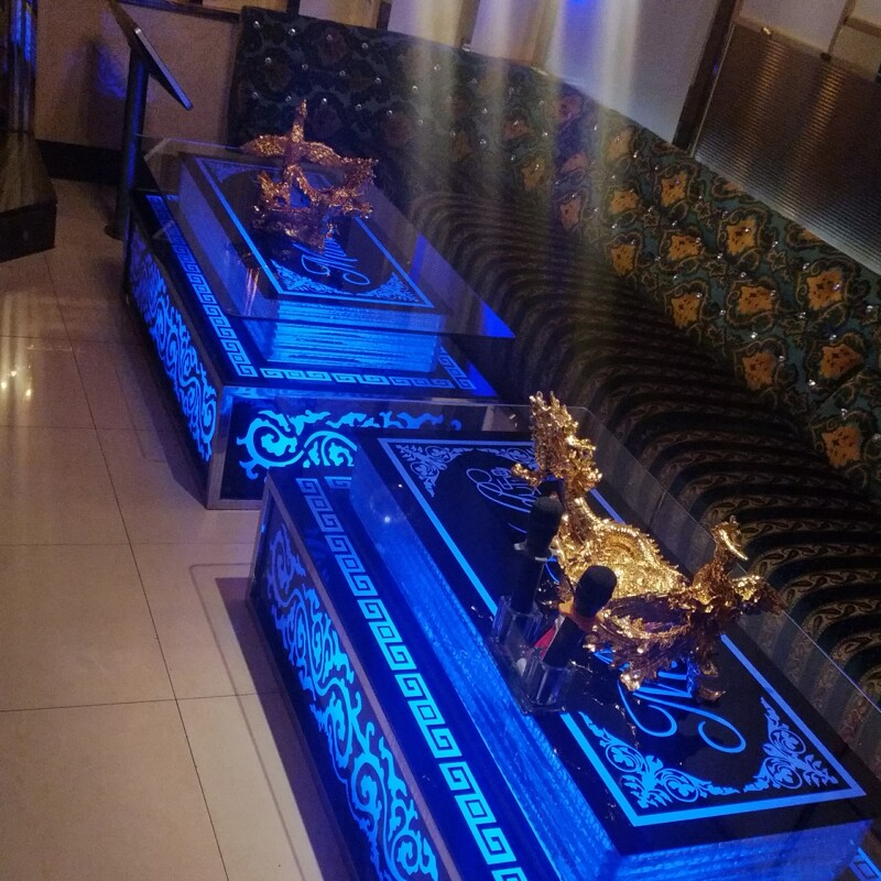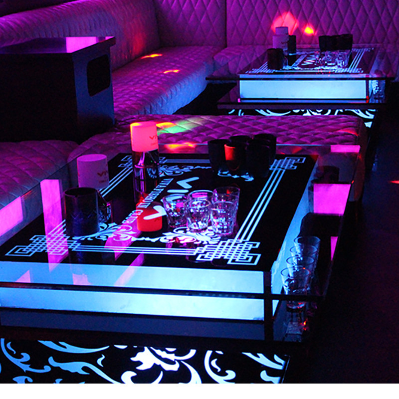 Прямые продажи 2019 Новый KTV Camellia Оптическое стальное стальное стекло винное бар с кожей европейская из нержавеющая сталь KTV стол