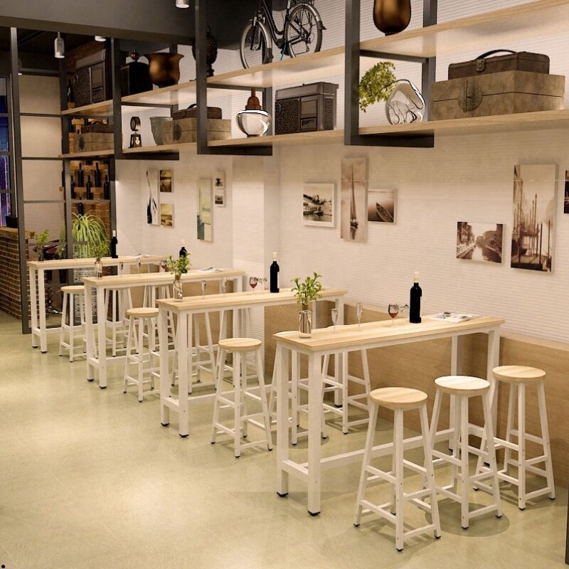 Бар обеденный стол и комбинация стула на стене балкона ретро -чайного чая кафе высокого и узких столов.