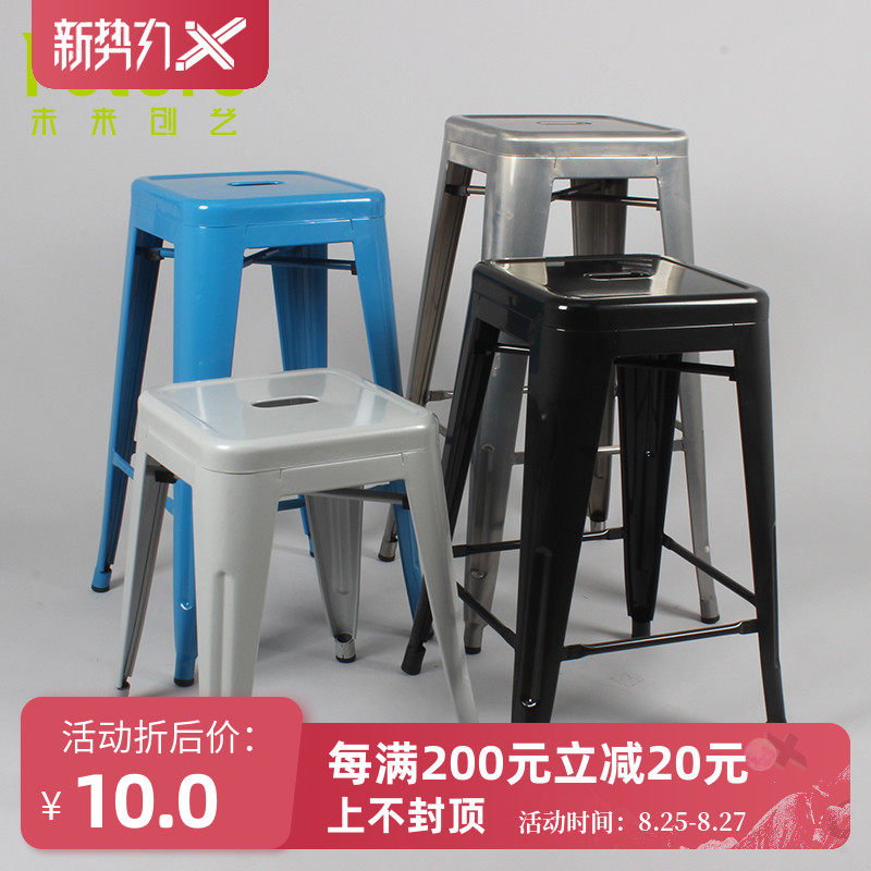 Железный стул ретро северный высокий стул ресторан промышленного пакистанского стула Металлический европейский чертаж высокий стул Высокий стул может быть сложен