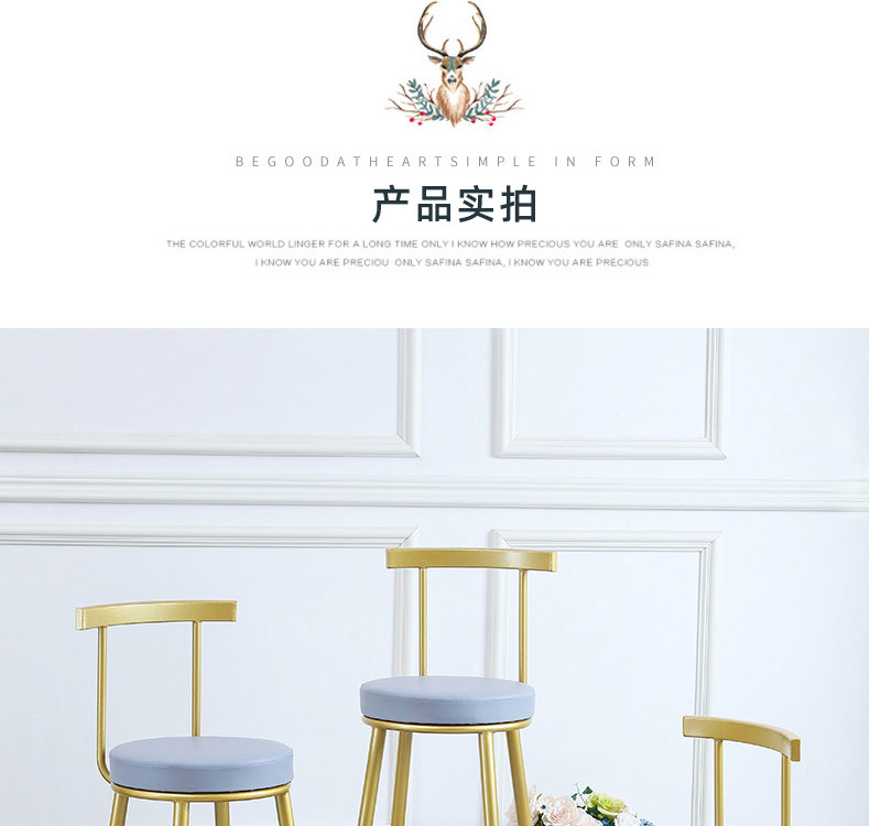 Световой роскошный бар с нордическими ювелирными украшениями, специфичный стул кассир кассовый аппарат, задний стул, простота, современная высокая передняя скамейка