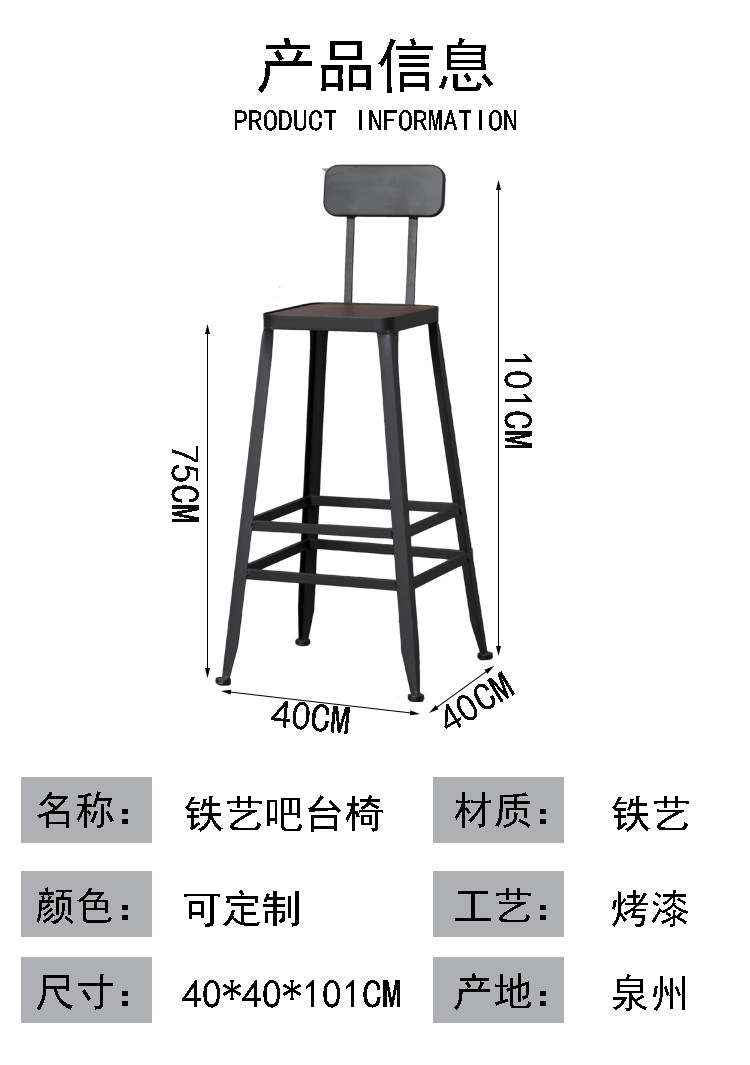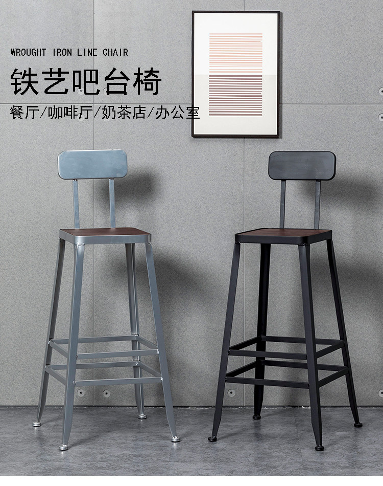 Промышленный стиль железный сплошной деревянный стул чайный магазин кафе -магазин высокий стул столовой современный минималистский задний кресло