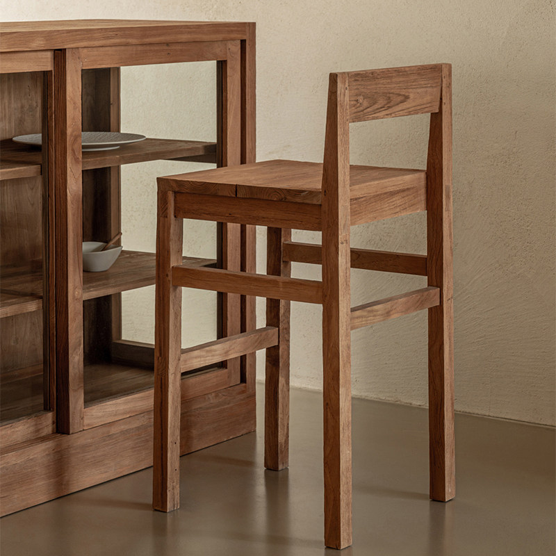 Белый барный стул, простой бытовой высокий табурет из массива дерева, скандинавский табурет ваби-саби, барный стул со спинкой, стульчик в стиле ретро