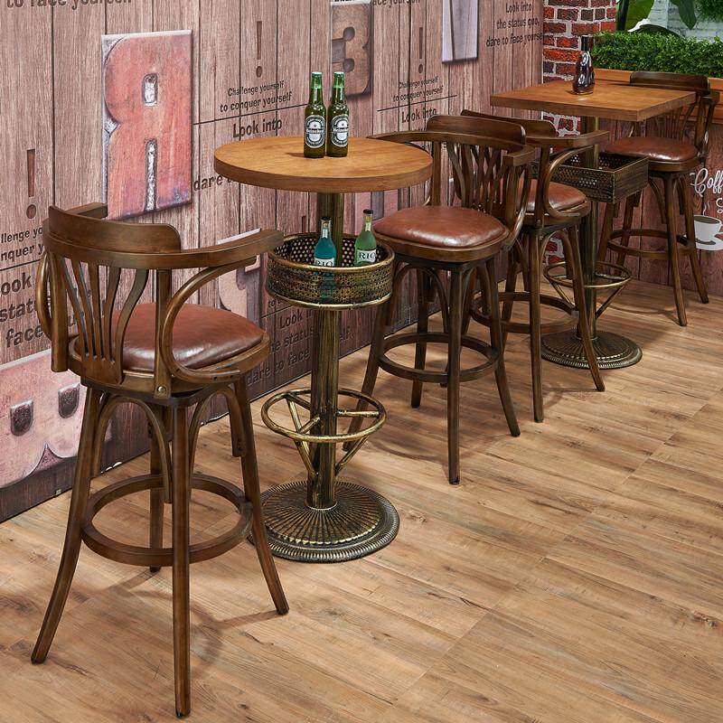 Необходимо настроить ретро сплошной древесины, вращающаяся с высоким баром, повседневное кафе -бар American Bar Stool Restaurant Clear Bar High Table