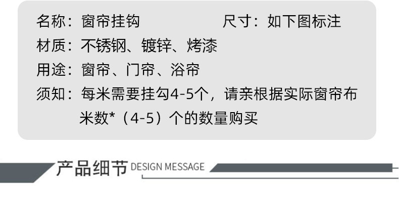 Занавеска из нержавеющей стали из нержавеющей стали с четырьмя развратными крючками тканевая ткань с подвесным крючком открывается висящее кольцо кольцо железные крючки.