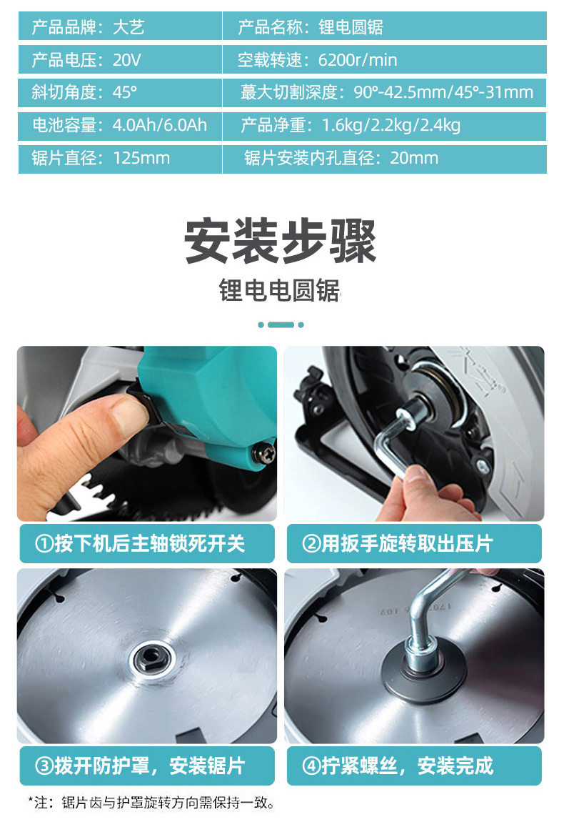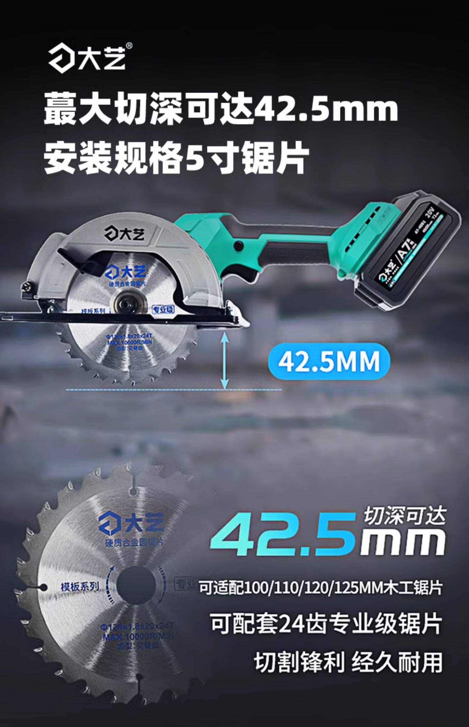 大艺 Перезаряжаемые портативные литиевые батарейки, портативная бензопила, электрический фонарь