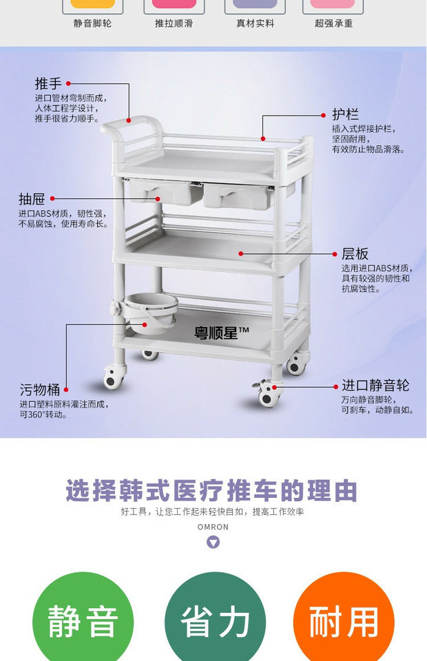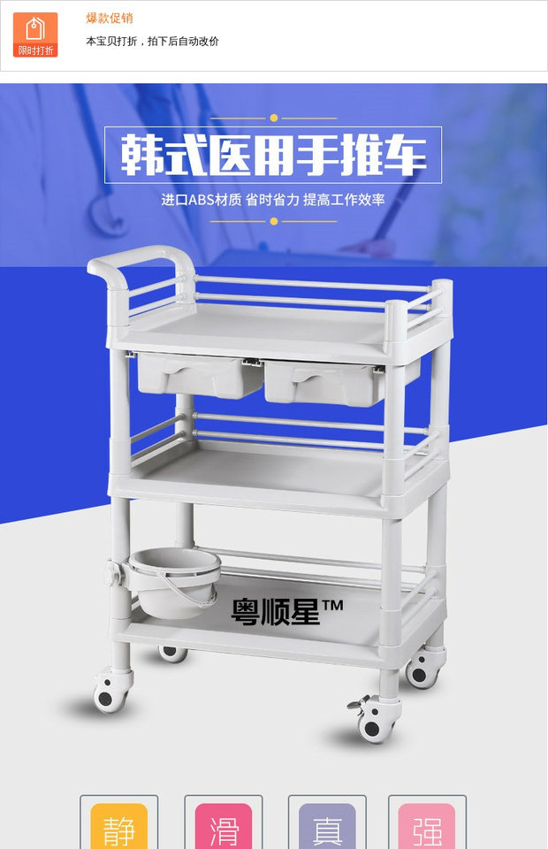 Медицинская пластиковая тележка для маникюра