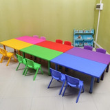 Пластиковый столик в детском саду. Детский утолщенный настольный стол ребенка шесть -личные прямоугольные столы классной комнаты и стулья
