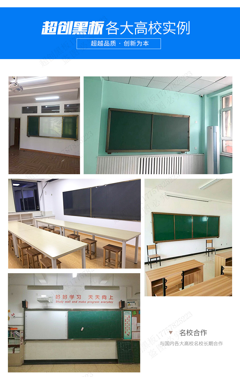 Тарелка:Использование высококачественных домашних, импортированных зеленых досок, бесшовных поверхностных чернил зеленого цвета, прикрепленного к поверхности, безупречно, изысканному и плоскому, гладкому письму, гладкому письму, четкому письму, без остатков, истираемого, устойчивого к коррозии цветовой тона , модный и красивый, студенты могут смотреть нормально под любым углом, визуальный эффект хорош и эффективно защищает визуальное здоровье учителей и учеников.