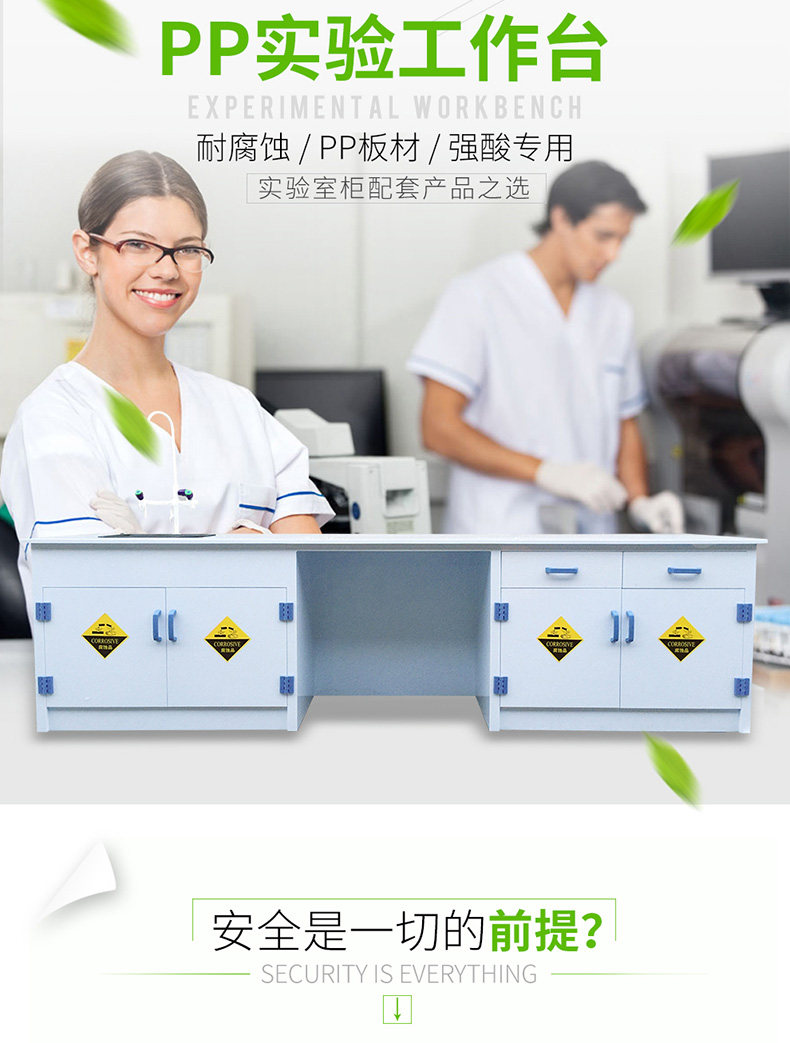 舸丽泓 Химическая лабораторная испытательная скамья Работая таблица Рабочая таблица PP PP кислота и щелочная, щелочная и щелочная, алкайдальская доска эксперимент